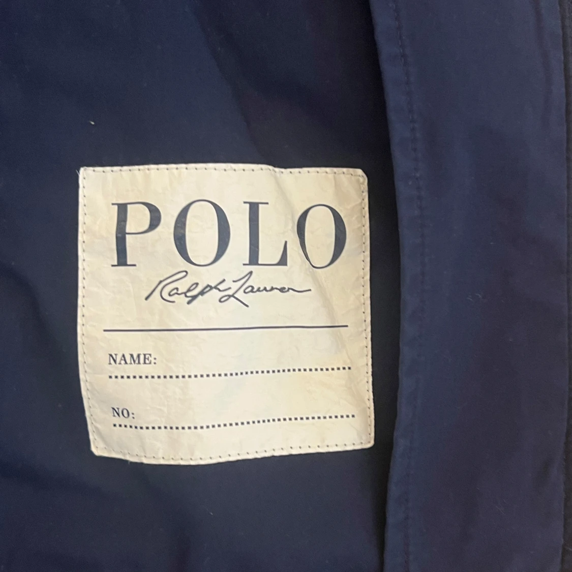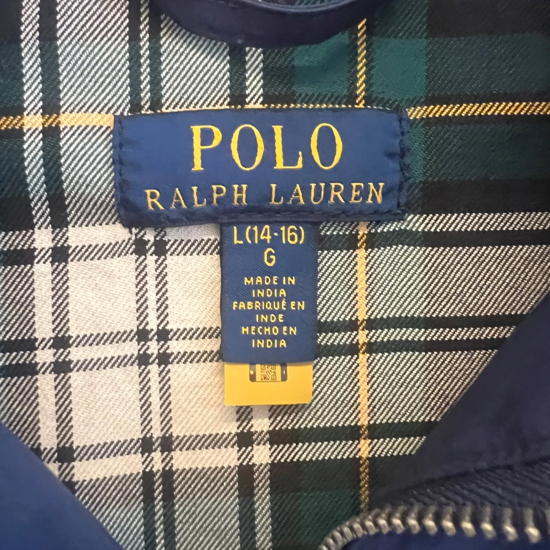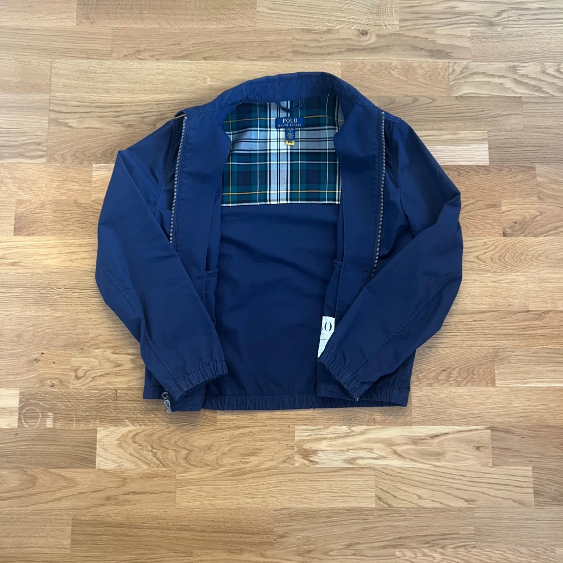 Klassisk och stilren jacka från Polo Ralph Lauren i marinblå färg. Jackan har dragkedja framtill, två praktiska sidfickor samt den välkända broderade Polo-loggan på bröstet. Den har en tidlös design som passar lika bra till vardags som till mer uppklädda tillfällen. Modellen är lätt och bekväm att bära, med resår vid ärmslut och nederkant som ger en bra passform. Perfekt som vår- och höstjacka eller under svalare sommarkvällar. Från NK! Storlek: 14-16 Skick: Mycket bra skick
