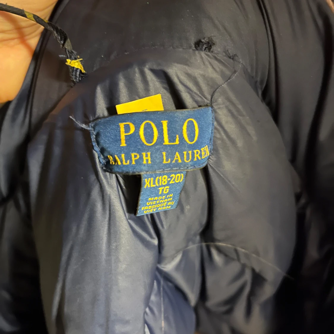 Säljer en snygg mörkblå dunjacka från Polo Ralph Lauren. Perfekt julklapp! Barnstorlek xl, 18-20 år men jag har använt den som i vanliga fall har s. Köptes förra vintern så i bra skick, sista bilden visar att ”hängaren” gått sönder men tror de går att laga enkelt om man vill (den går frf att hänga upp i den andra ”hängaren”) priset går att diskutera😊