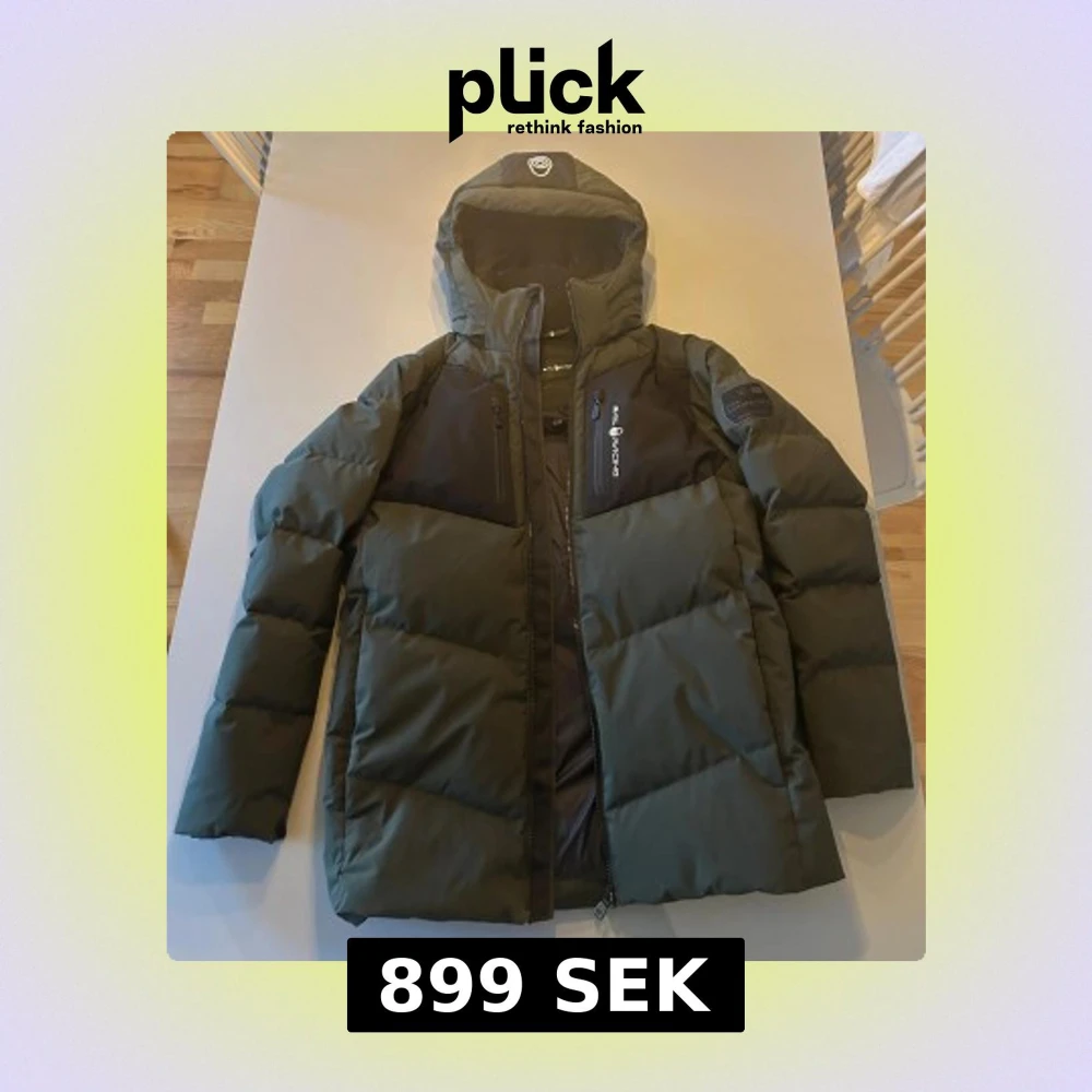Säljer en grön dunjacka från Sail Racing i storlek 176, passar XS. Jackan har två svarta bröstfickor med zip. Insidan är fodrad med fjädrar och är perfekt för kalla dagar. Som ny.