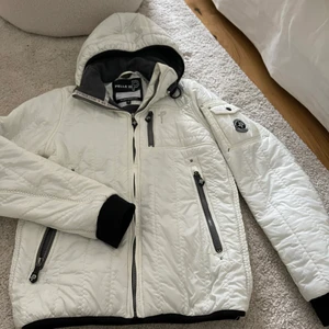 Vit dunjacka/vinterjacka från PELLE P! Hur snygg som helst. Storlek S. Endast använd en gång så i nyskick förutom ett märke längst ner vid höger ficka. (Fastnade i karborre från en väska). Nypris 2300kr, säljer billigt pga den lilla skadan trots att den annars typ är ny.