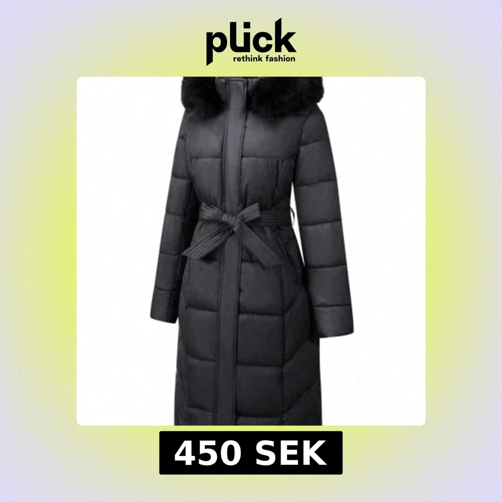 Säljer denna snygga trendiga vinterjackan. Köpt för ungefär 3 månader sedan och använt endast ett par gånger. Storlek XS. Lång och snygg men ett skärp.
