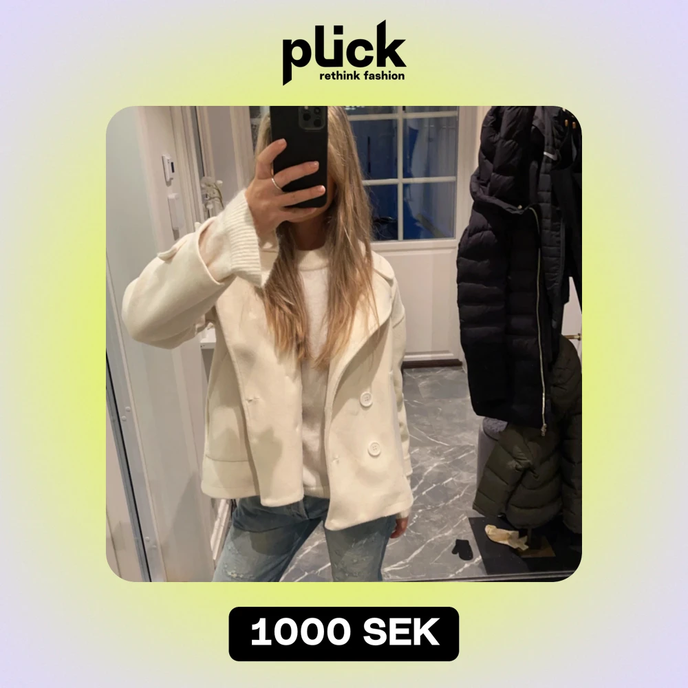 Säljer en stilren vit kappa i mycket bra skick. Den har en klassisk design med stora knappar framtill och en snygg krage. Perfekt för höst och vår, och passar både till vardags och lite finare tillfällen. Jackan har långa ärmar och en normal passform. Superfin att matcha med jeans eller klänning!