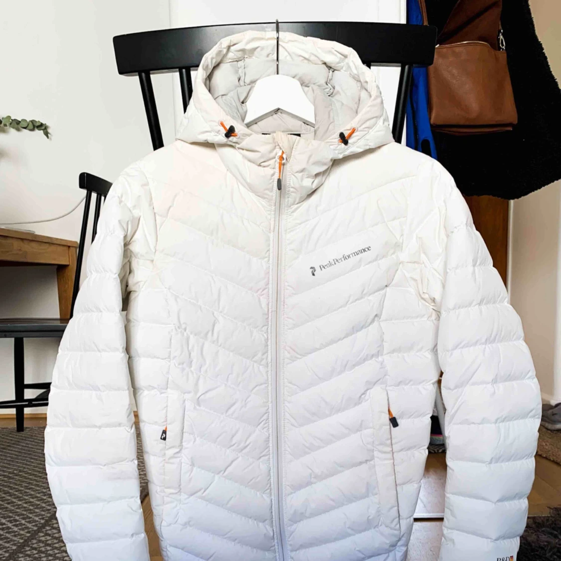 Suupergo dunjacka från Peak Performance som tyvärr är för liten. Finns ett litet ”stickhål”, se bild.