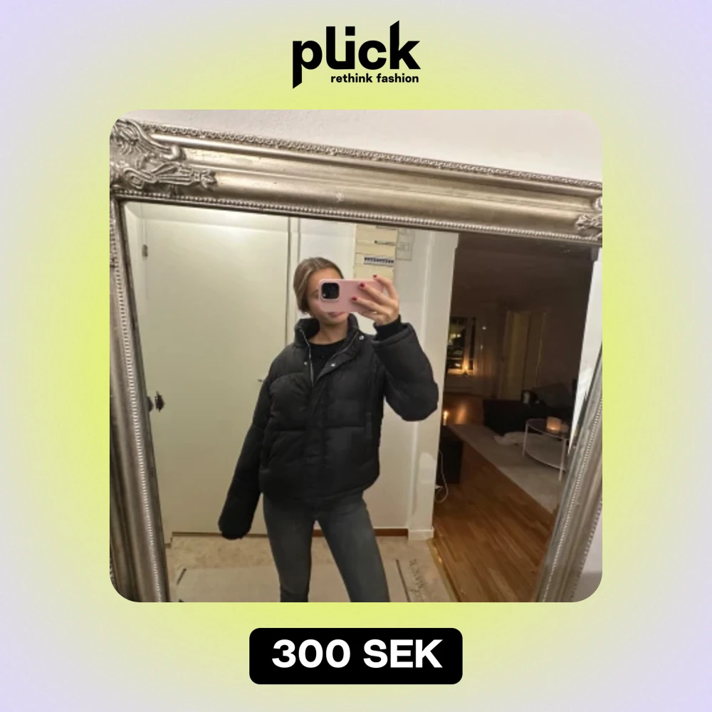 En supersnygg svart pufferjacka i storlek 34 (men känns mer som en 36, då den är lite större i storleken)! Perfekt nu till kallare tider🩷 (pris går att diskutera)
