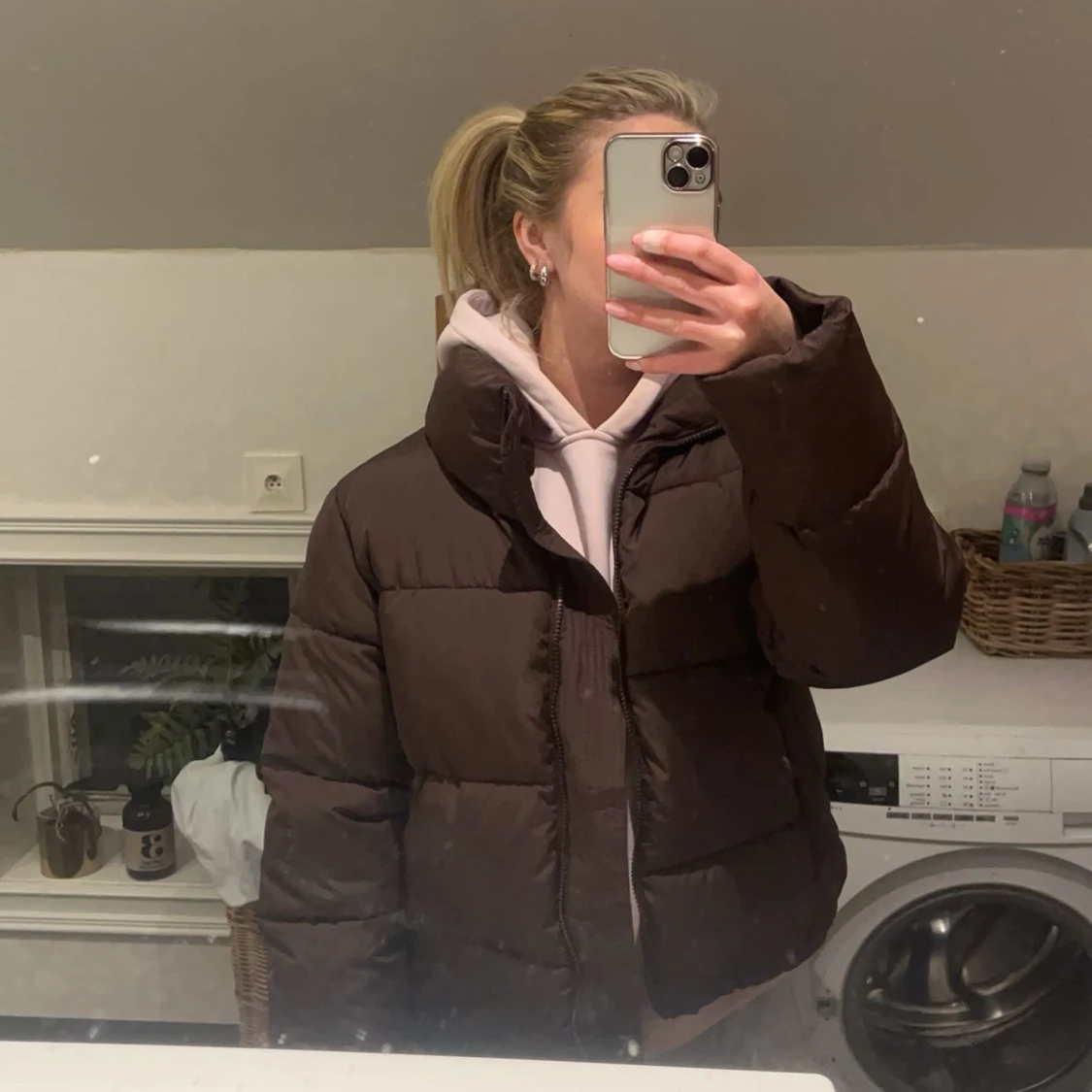 Säljer en brun pufferjacka med dragkedja. Super mysig och varm pris kan diskuteras