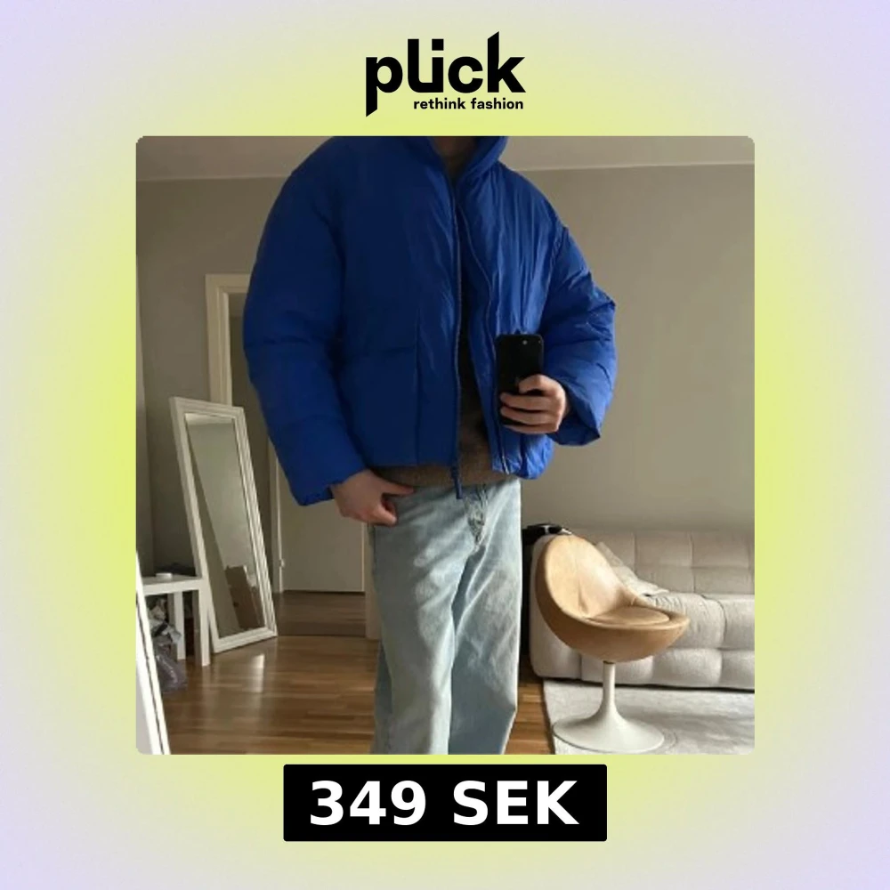 Säljer en blå pufferjacka från Zara i storlek M. Jackan har en hög krage, två stora fickor framtill jackan har en loose passform köptes förra vintern