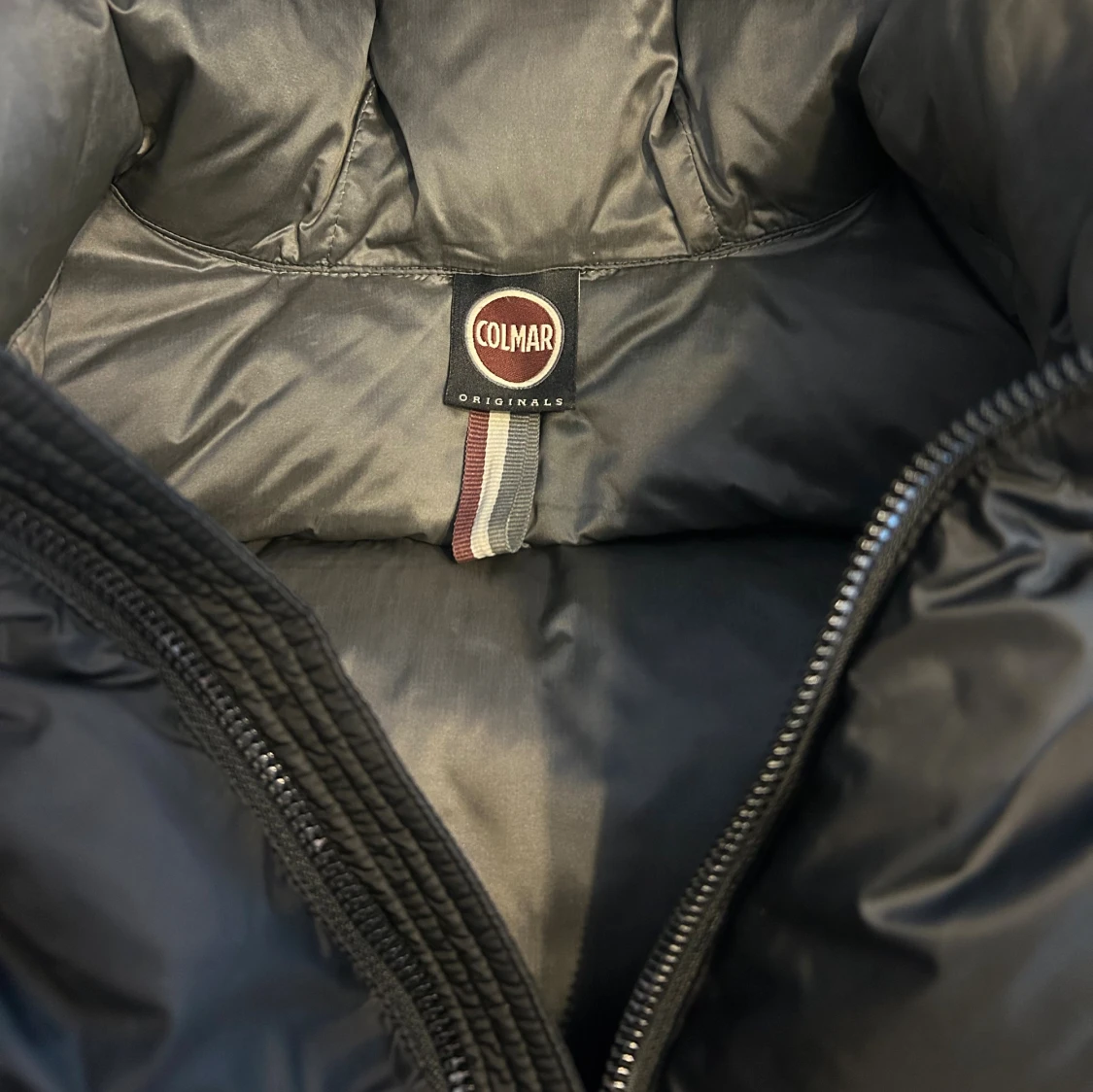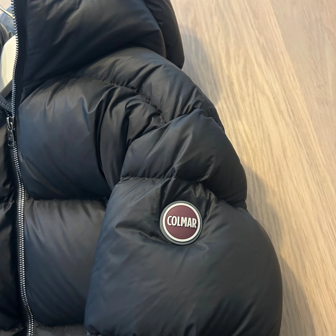 Snygg svart vinterjacka från Colmar med huva och två fickor. Jackan har en klassisk pufferlook med Colmar loggan på ärmen. Perfekt för kalla dagar och riktigt skön att bära, bara använd någon månad så jackan är i bra skick. Jackan är i storlek 16y-170 men passar även XS-S🩷kan gå ner något i pris vid snabb affär☺️