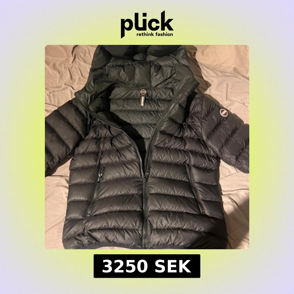 Snygg svart dunjacka från Colmar med huva och quiltad design. Jackan har dragkedja framtill, två sidofickor med dragkedja och en innerficka. Perfekt för kalla dagar och har en clean, sportig look. Finns ett litet hål ovanför axeln syns knappast när man har jackan på! Vid snabb affär kan priset diskuteras