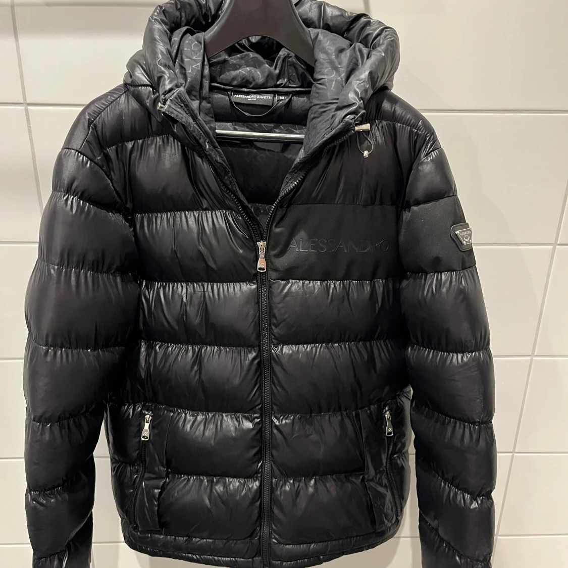 Snygg svart pufferjacka från Alessandro Zavetti med huva och dragkedja framtill. Jackan har två fickor med dragkedja och diskret logga på bröstet samt ärmen. Perfekt för kalla dagar och riktigt stilren look.