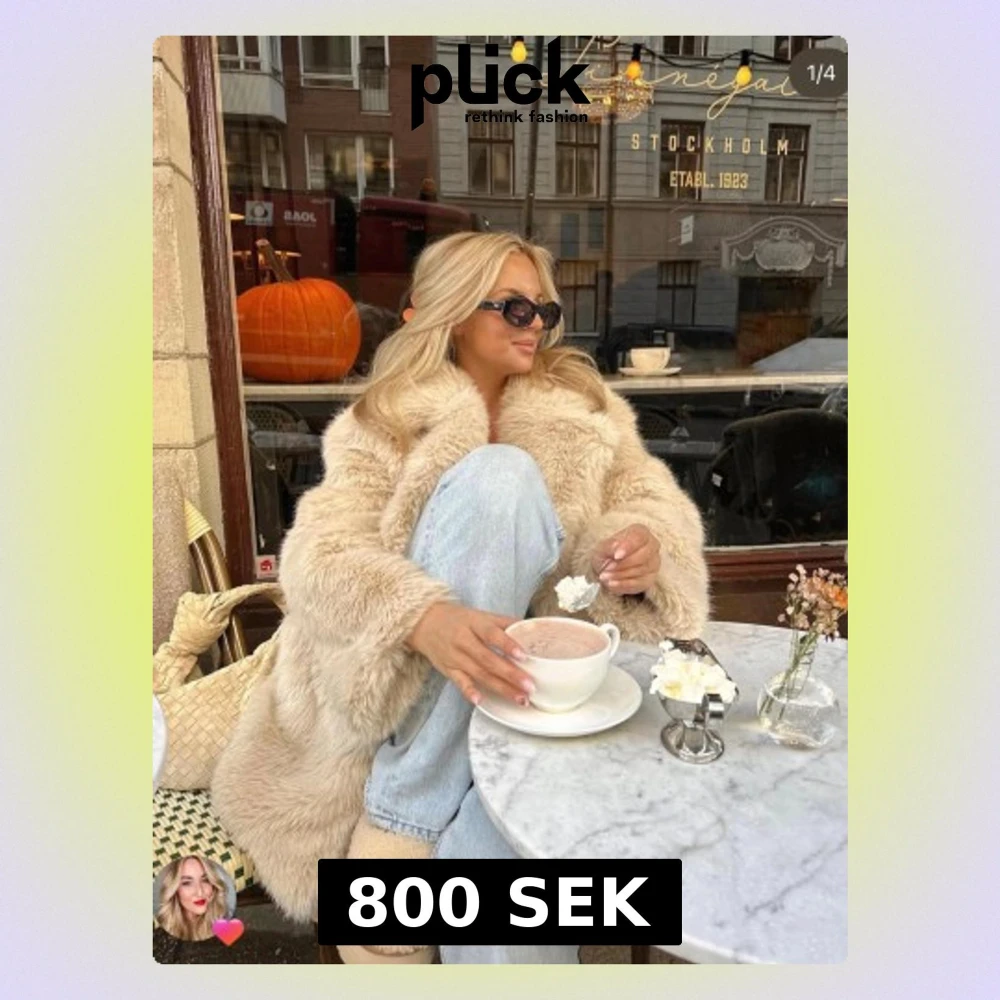 Säljer en supermjuk och fluffig pälsjacka i beige färg med bred krage. Knappt använd så den är som ny.
