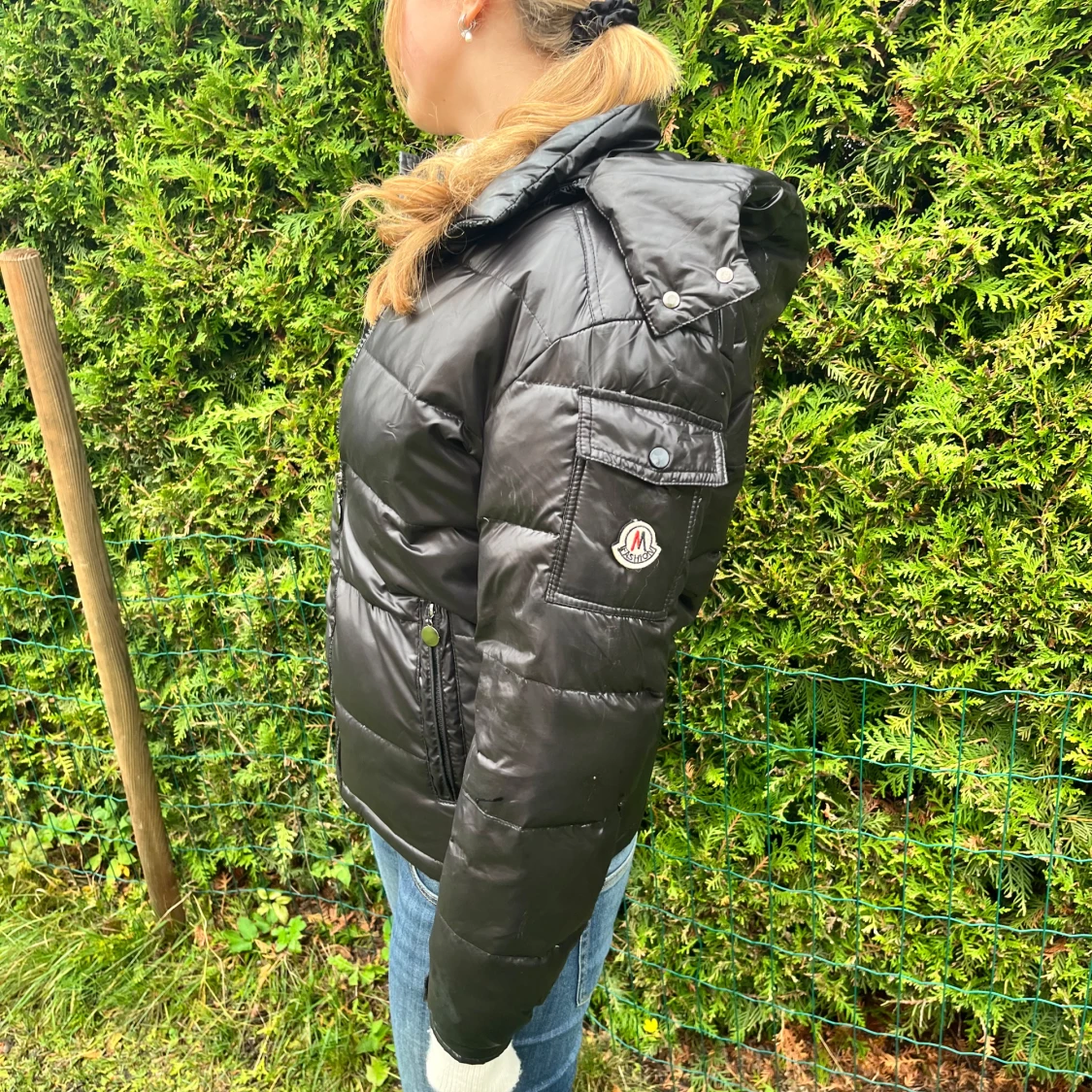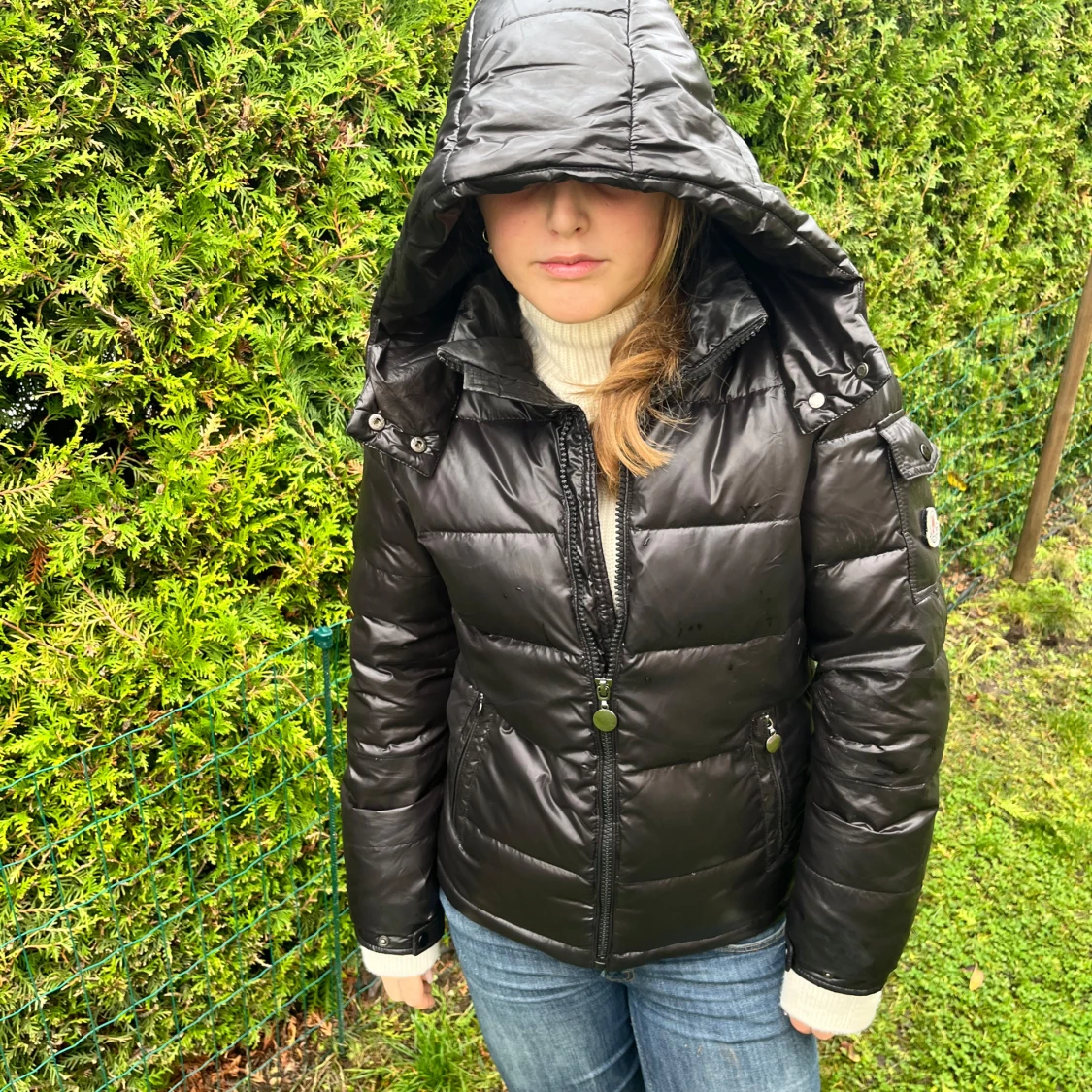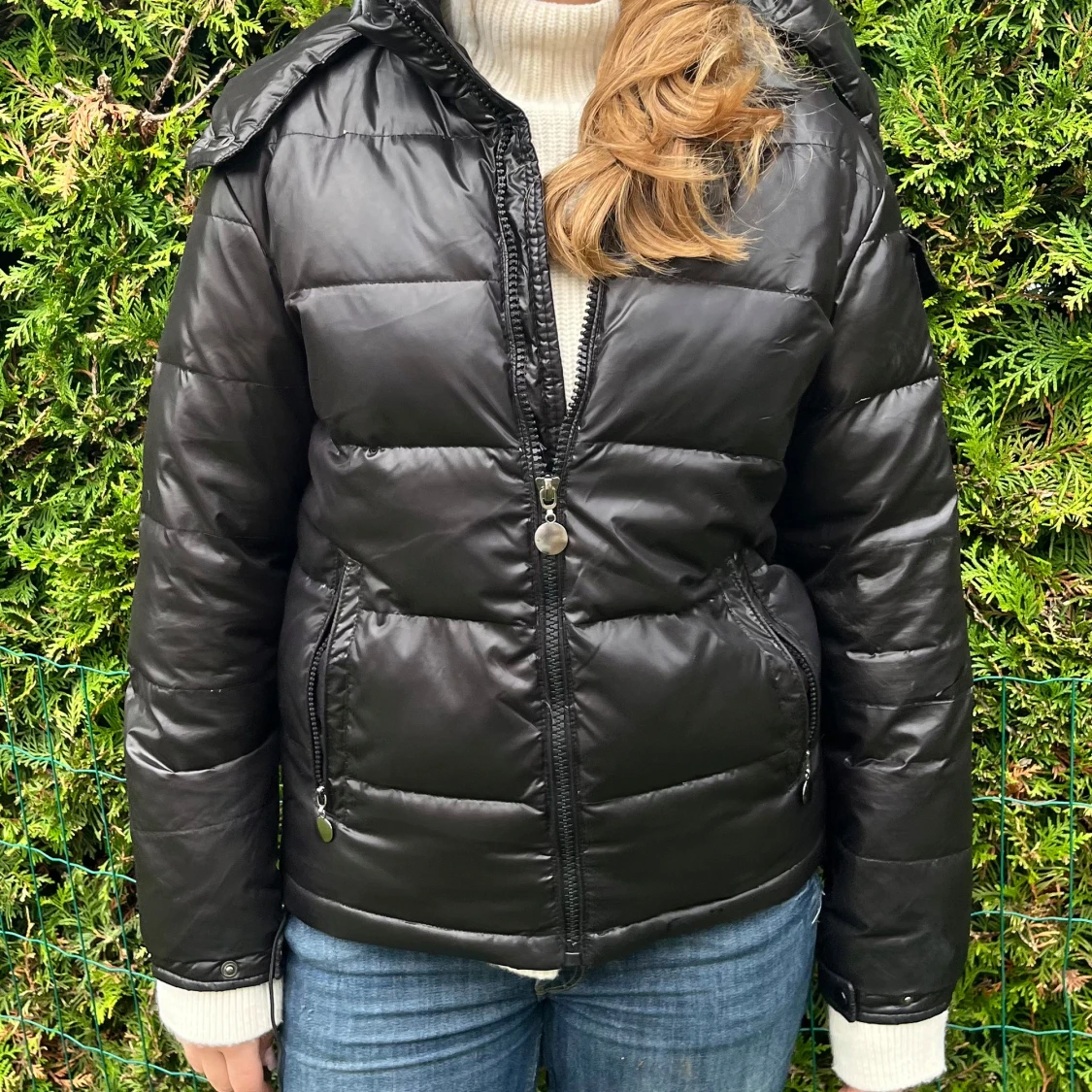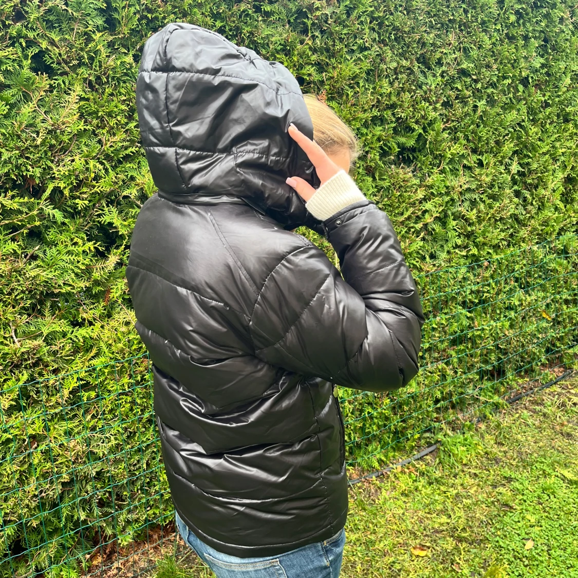Svart pufferjacka med huva, dragkedja och tryckknappar. Jackan har quiltad design, fickor med dragkedja. Perfekt för kalla dagar och riktigt snygg till jeans. Trendig och perfekt nu till vintern!🤩