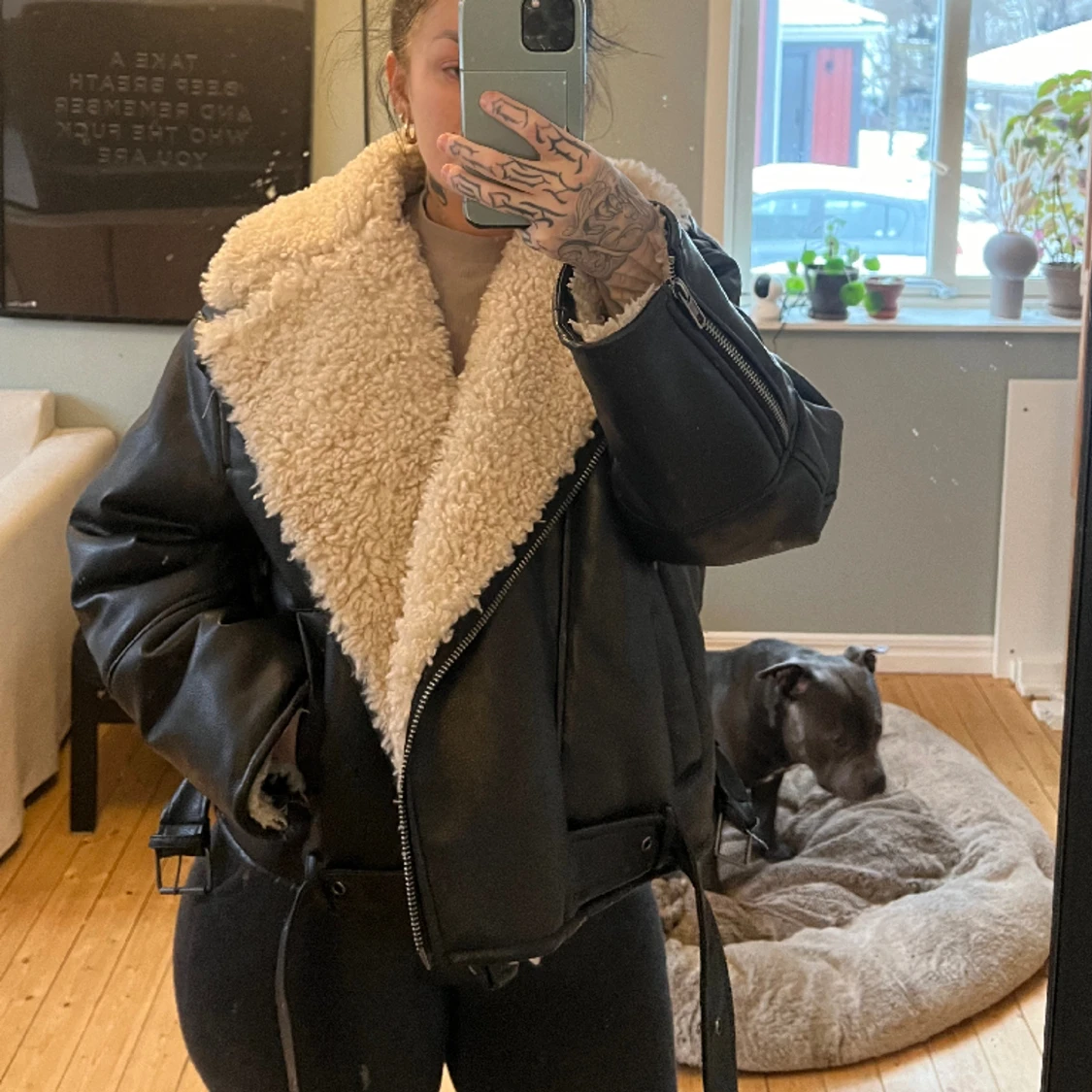 Bikerjacka från HM förra året. använd fåtal gånger den är helt som ny. Storlek xl då jag vill ha den oversized. Jag är vanligtvis en M.