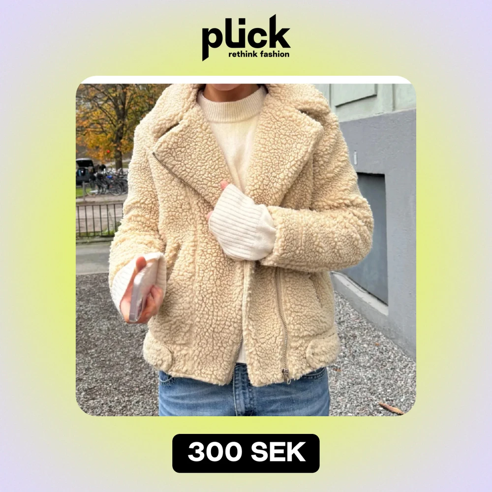 Mysig beige teddyjacka perfekt för höst och vinter. Jackan har en avslappnad passform med dragkedja och stora slag. Den är supermjuk och håller dig varm under kyliga dagar. Perfekt att matcha med jeans för en casual look.