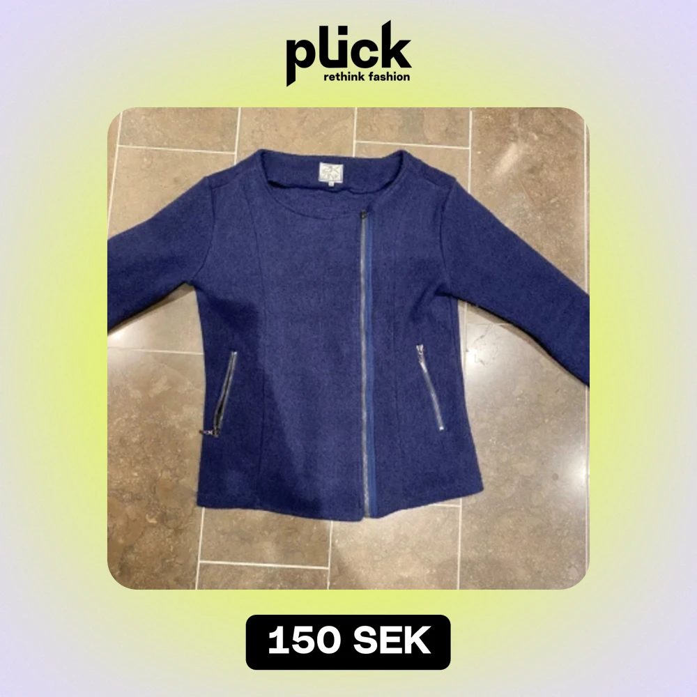 Säljer en snygg mörkblå ulljacka med asymmetrisk dragkedja framtill. Jackan har en stilren design med långa ärmar och två dragkedjefickor. Perfekt för höst och vår när du vill hålla dig varm och stilren. Passar både till vardags och lite finare tillfällen.