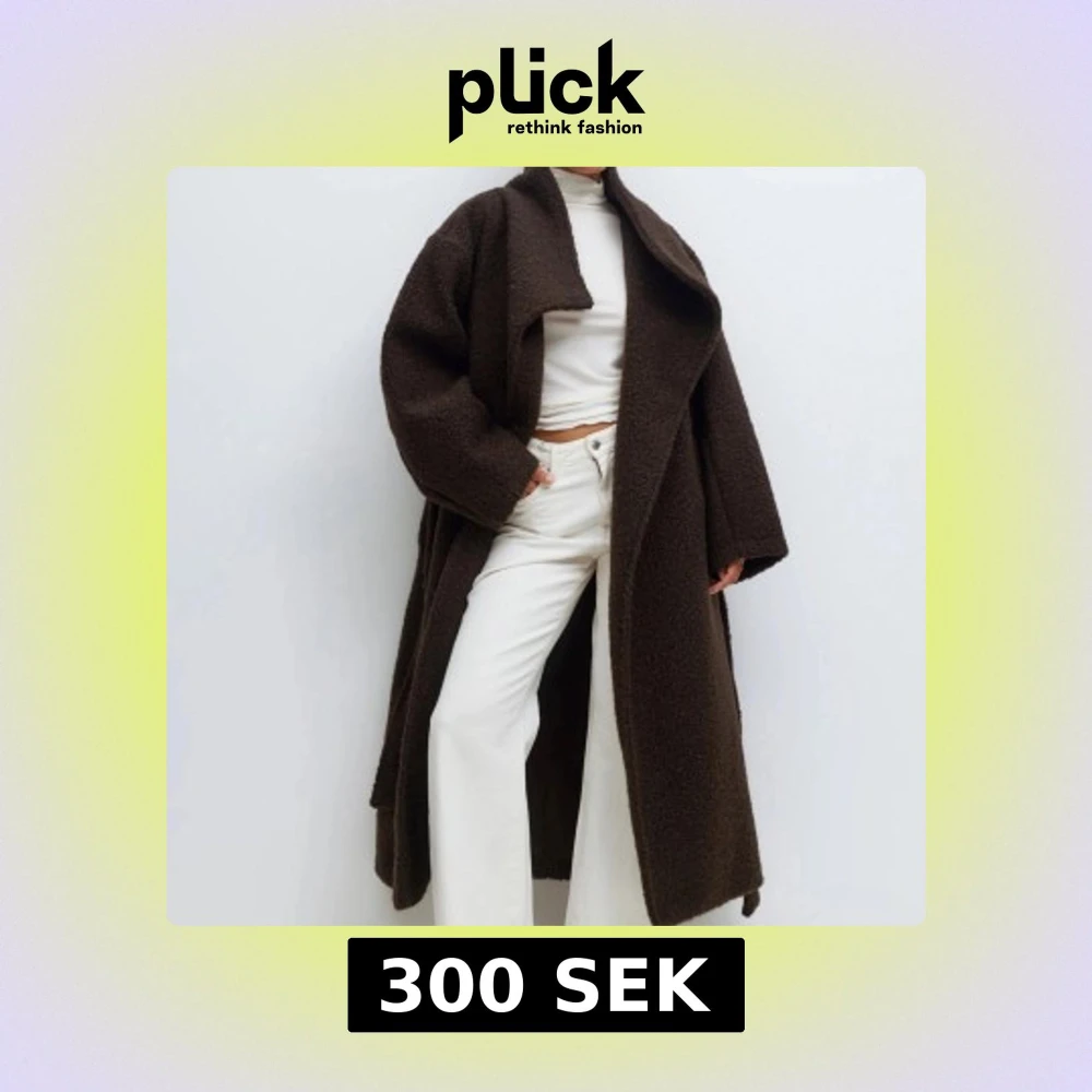 Säljer en lång och oversized mörkbrun kappa i fluffig/Teddy liknade material från Gina Tricot. Jackan har bred krage, långa ärmar och ett matchande bälte i midjan. Köpt hösten 2024.
