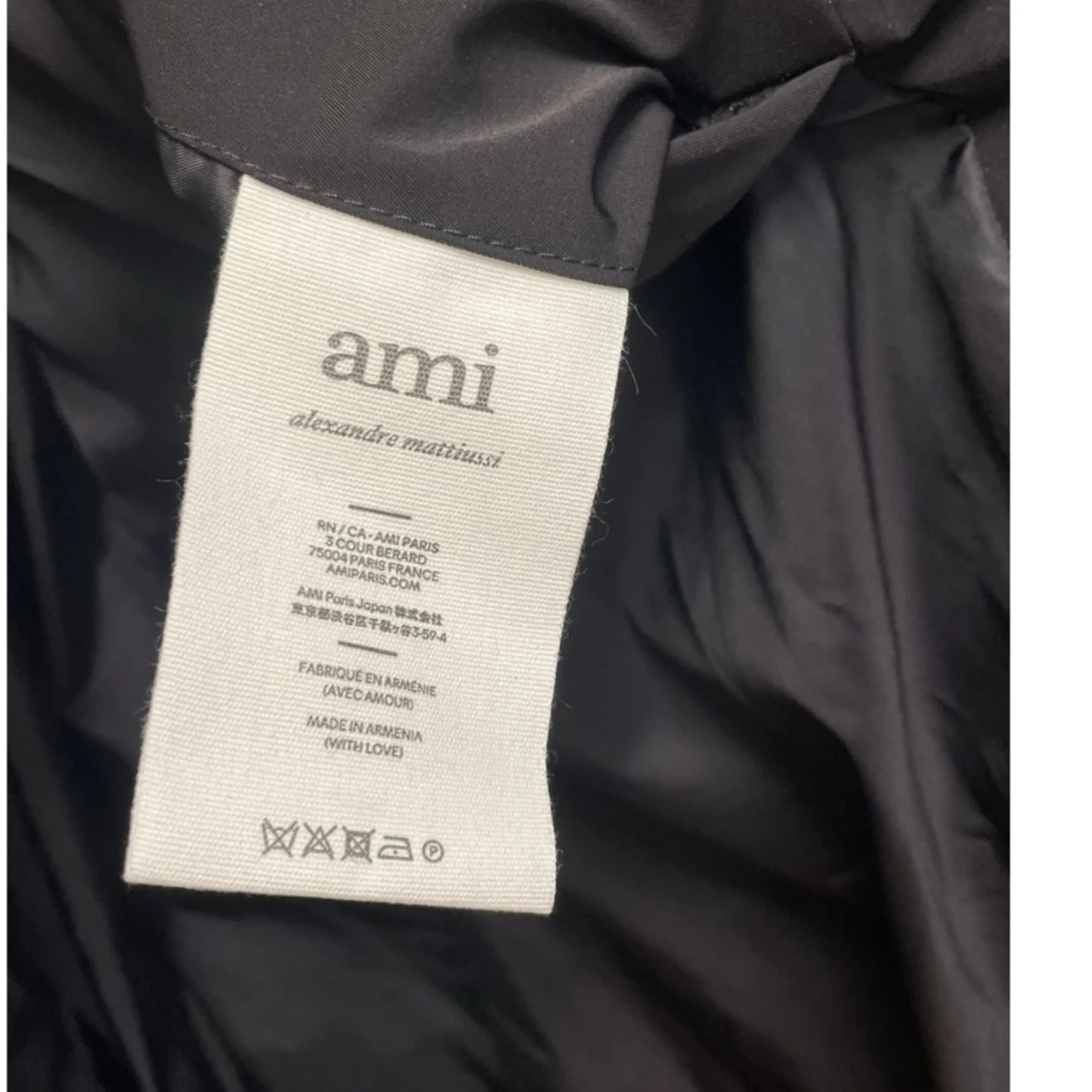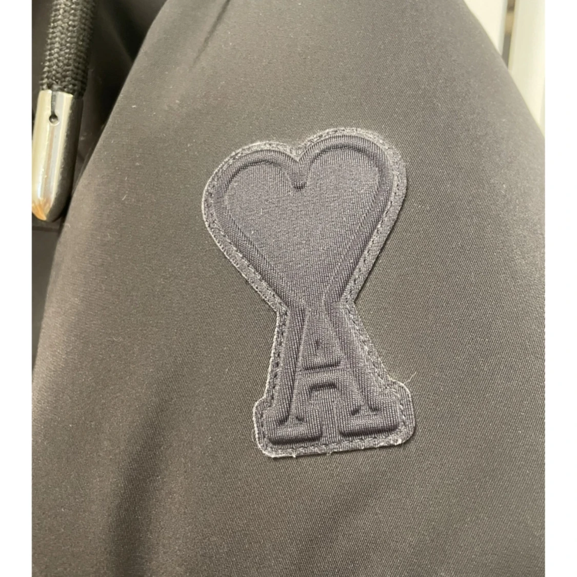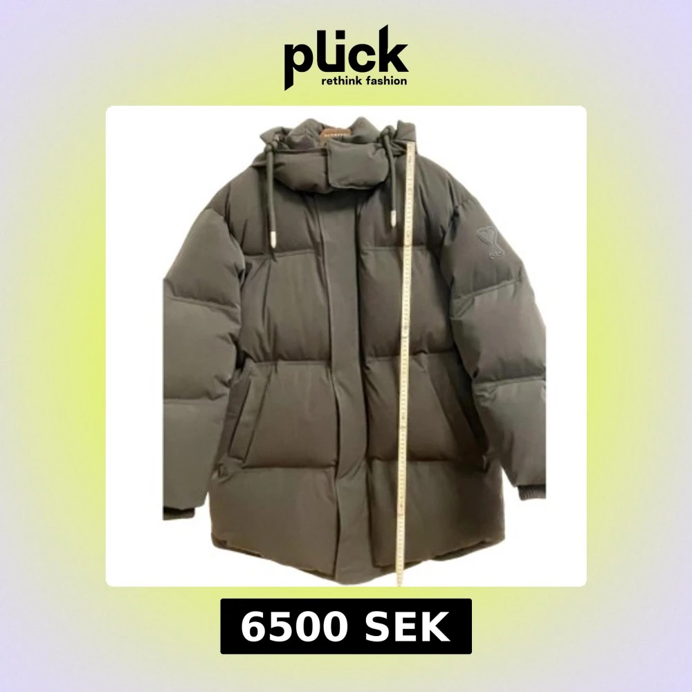 Säljer en svart pufferjacka från Ami med hög krage och justerbara dragsnören. Jackan har en stilren design med dolda fickor och en dragkedja framtill. Perfekt för kyliga dagar. Oversized! M-L