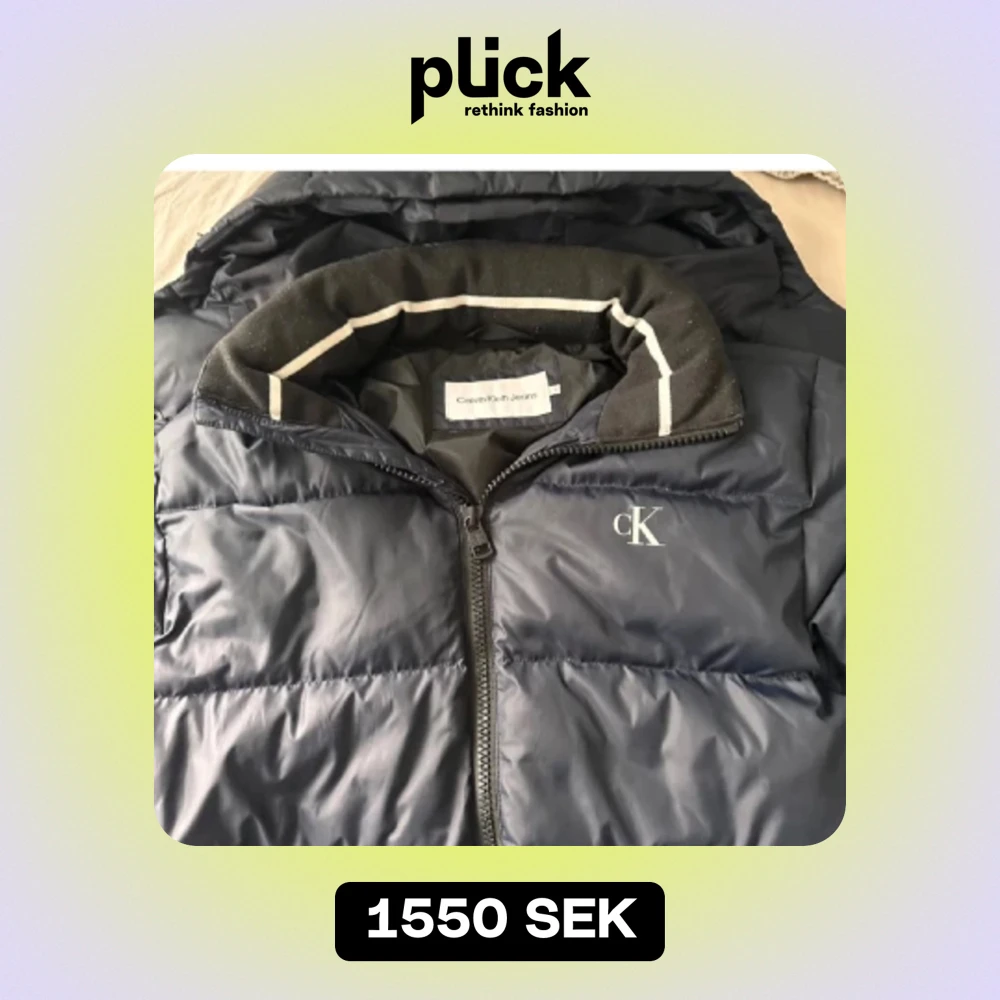 Säljer en snygg mörkblå pufferjacka från Calvin Klein Jeans. Jackan har en dragkedja framtill och en mysig krage med vita detaljer. Perfekt för kalla dagar med sin vadderade design. Den har också en avtagbar huva för extra skydd mot väder och vind.