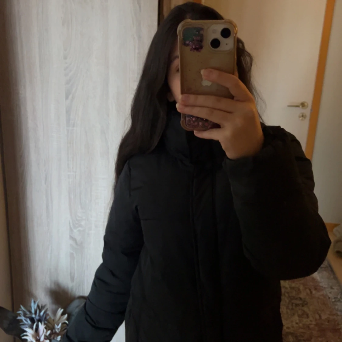Säljer min vinterjacka för jag har köpt en ny. Den är använd i bra skick. Den är i storlek 160. Den passa jättebra min mamma som brukar ha storlek Xs/S