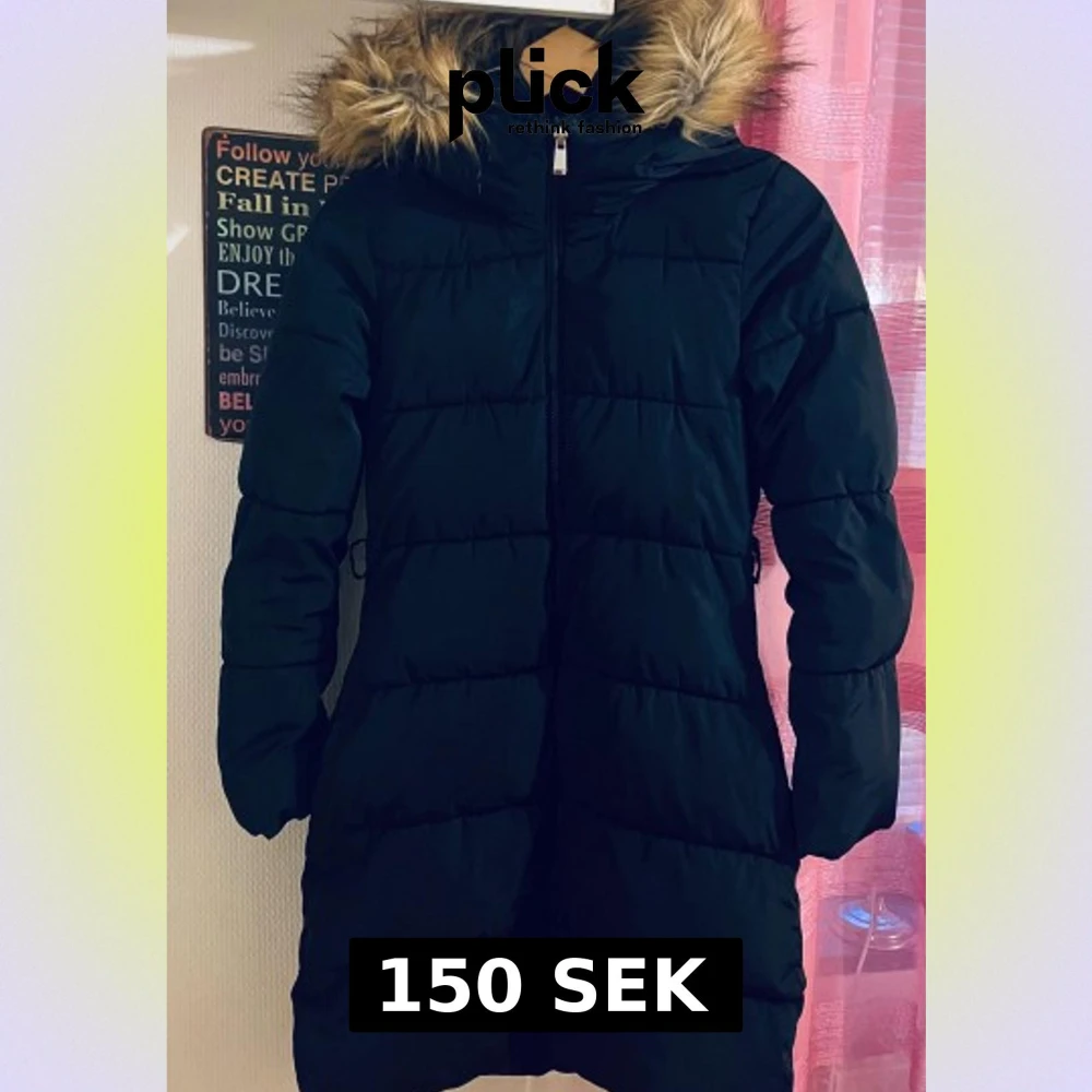 Säljer en svart lång jacka från Lindex i storlek XS. Jackan har huva med fluffig fuskpäls, dragkedja framtill och quiltad design. Perfekt för kalla dagar med sin varma och stilrena look. Passformen är normal och ärmarna är långa.