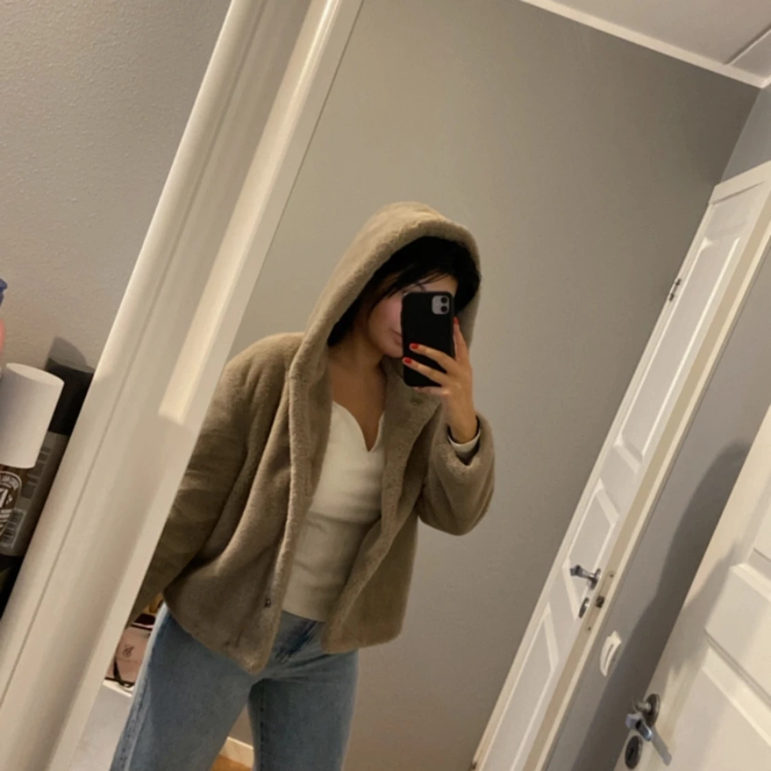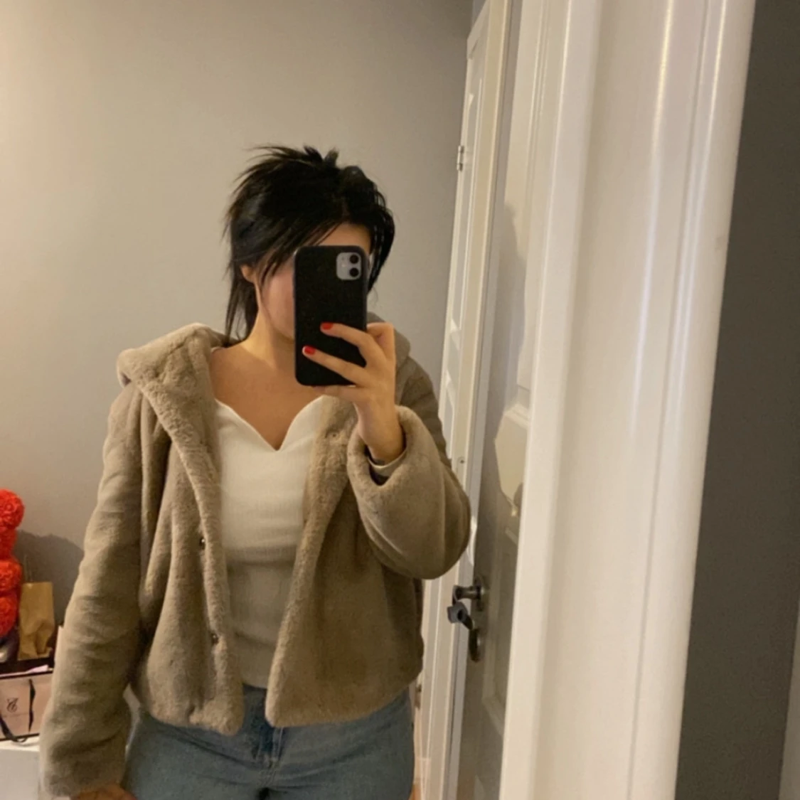 En mysig och fluffig beige jacka från Mango i strl XS. 🌸 Säljer jackan för 300kr, kan mötas upp i Stockholm området❤️
