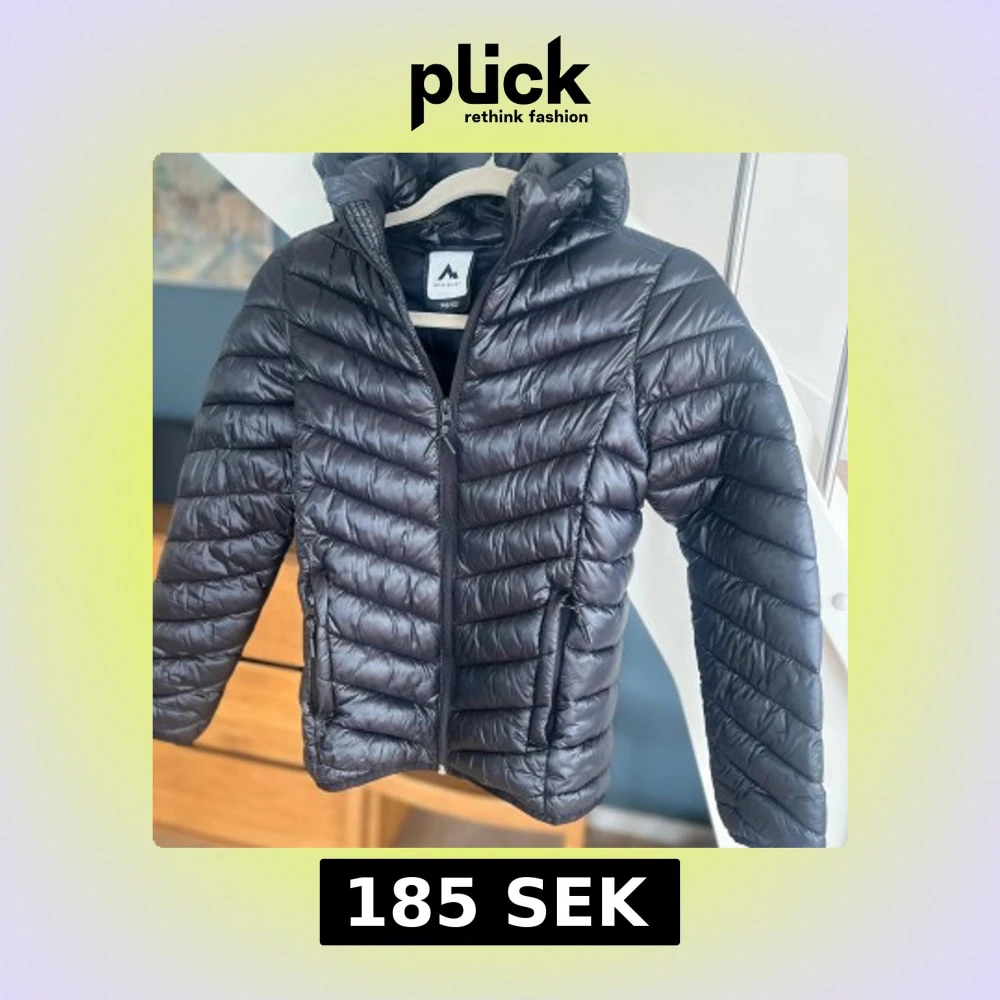 Säljer en svart pufferjacka från McKinley i storlek 146/152. Jackan har huva, dragkedja framtill och två fickor med dragkedja. Snyggt quiltad med horisontella och v-formade sömmar, samt reflexdetaljer och en söt reflex i form av ett moln där en liten repa finns som lagats med reflexen. Förutom det finns inga synliga tecken på att jackan använts