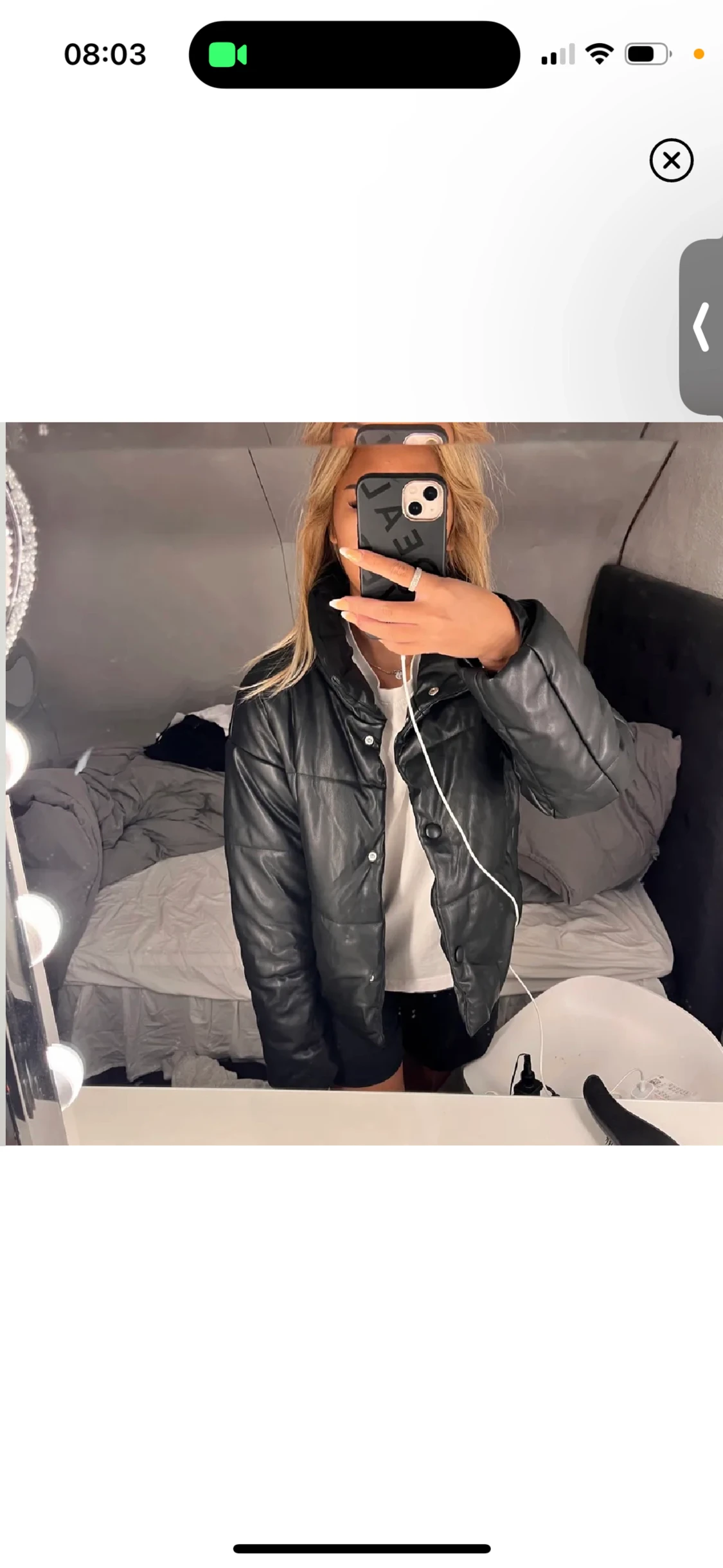 Jätte snygg vinterjcaka ifrån NA-KD i storleken 32 men passar mig som bruka ha 34/36. På tredje bilden så har en knapp åkt av men de går och limma tillbaks knappen den.