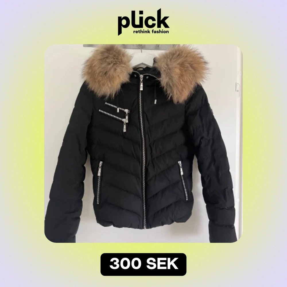 Säljer min fina vinterjacka från Hollies. Jackan är svart med silvriga kedjor och en superfin päls. Inga täcken på användning. Storlek 34/xs