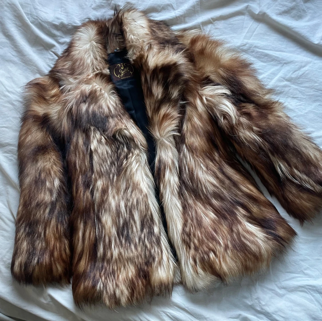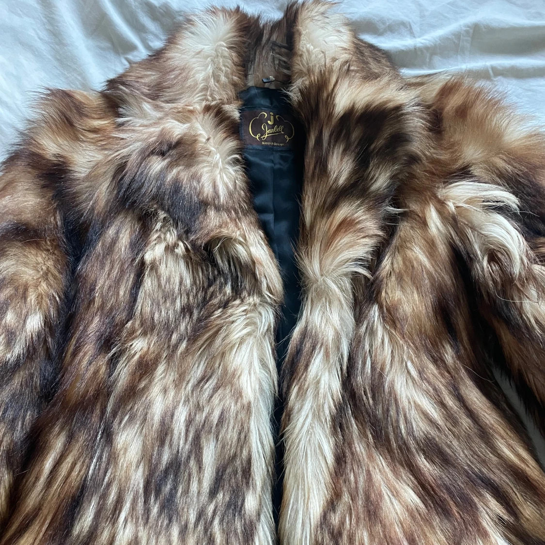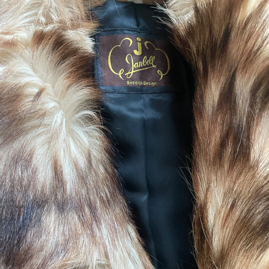Ikonisk pälsjacka i äkta päls från Janbell. Finns ett skärp till men ena bälteshällen är sönder, annars jättefint skick. Kan skicka fler bilder info vid intresse.