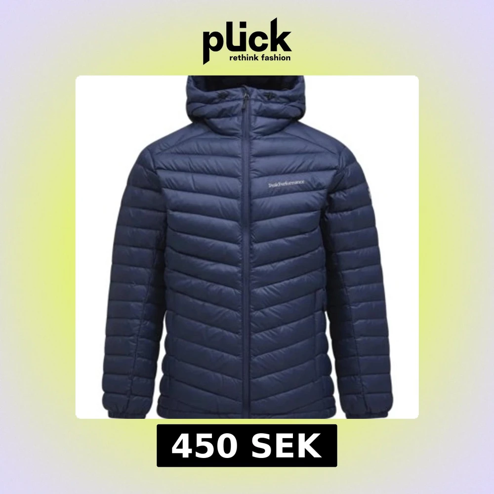 Säljer en marinblå dunjacka från Peak Performance med huva och dragkedja framtill. Jackan har ett quiltat mönster och är perfekt för kyliga dagar. Snygg, sportig look och passar dig som gillar stilren design. Kom med pris förlag!