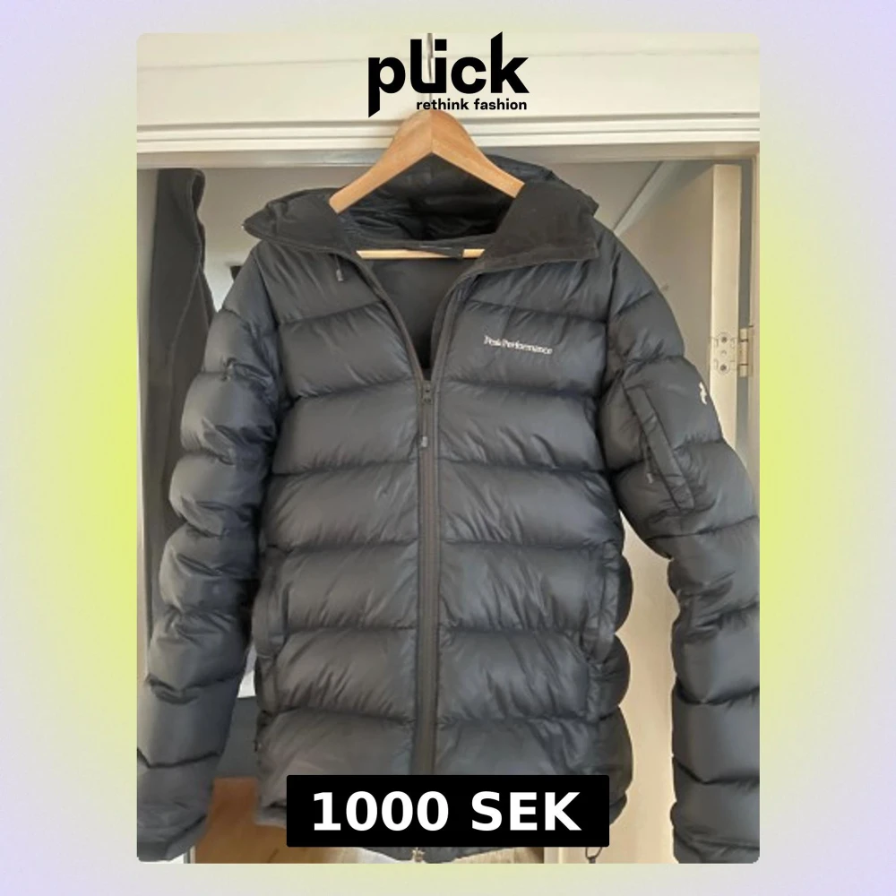 Säljer en svart dunjacka från Peak Performance med klassisk puffer-look. Jackan har dragkedja framtill, hög krage och diskret logga på bröstet. Perfekt för kalla dagar och riktigt skön att bära. Passar dig som vill ha en stilren och varm jacka. Nypris 4200 kr