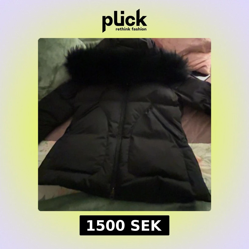 Säljer en svart pufferjacka med fluffig pälsdetalj på huvan. Jackan har dragkedja framtill och är designad för att hålla dig varm under kalla dagar. Perfekt för dig som vill ha en stilren och mysig vinterjacka med snygga detaljer.