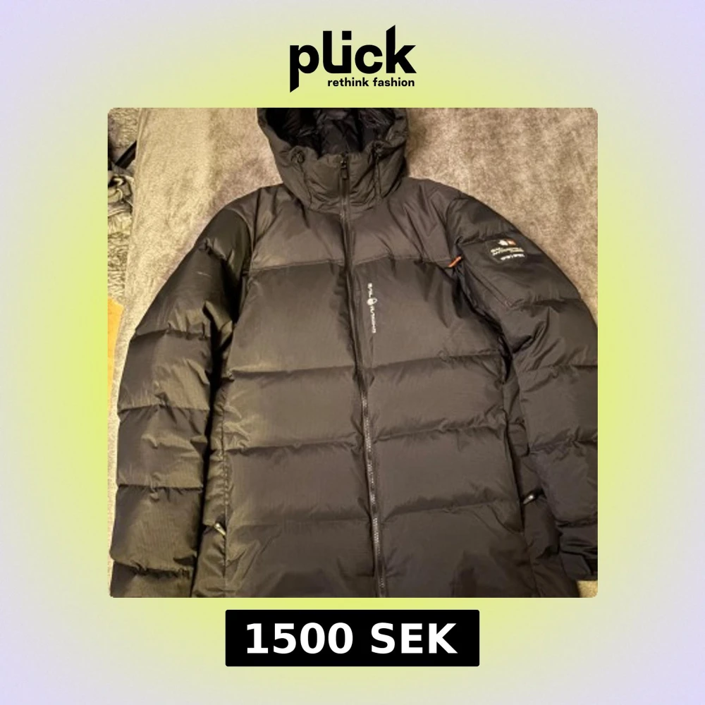 Säljer en svart dunjacka från Sail Racing med huva och dragkedja. Jackan har en broderad logga på ärmen och är perfekt för kalla dagar. Den är långärmad och designad för att hålla dig varm i extrema förhållanden. Använd 3-4 gånger inte reportage eller skador