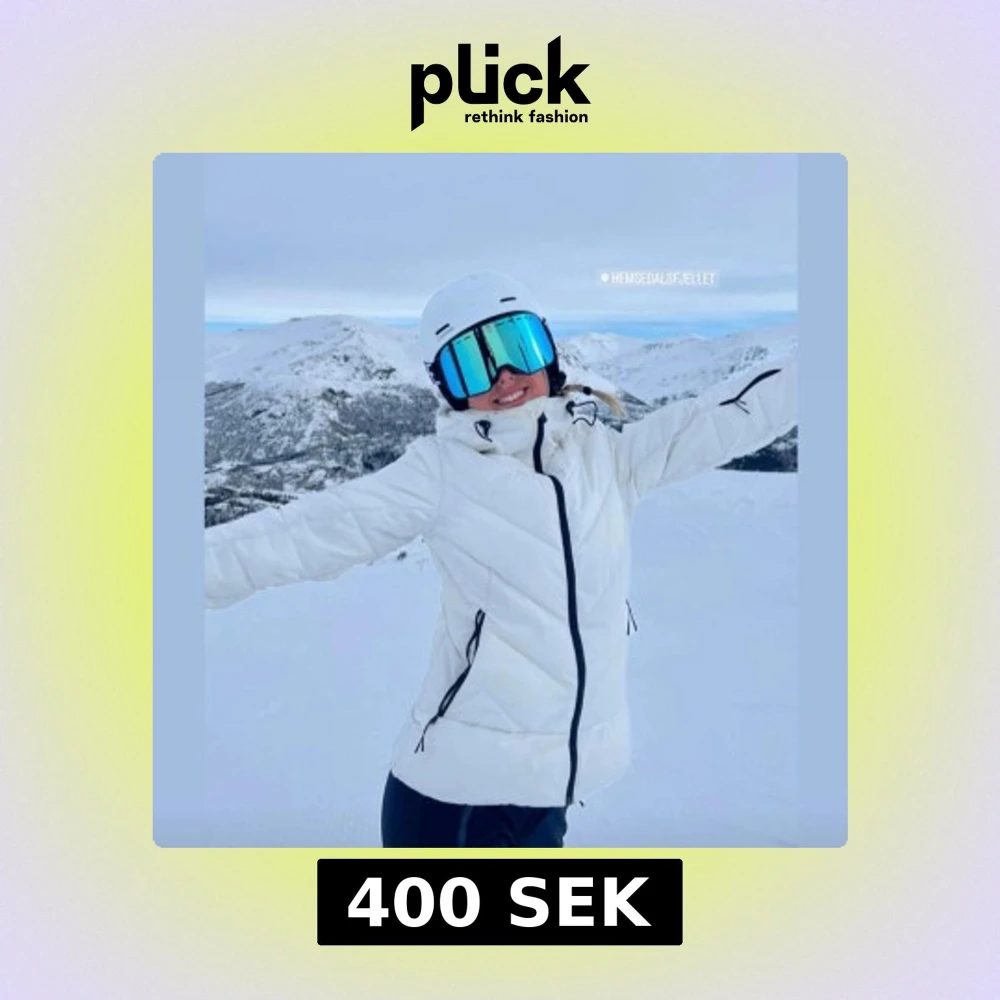 Säljer en snygg vit vinterjacka med hög krage. Perfekt för alla dagar i skidbacken. Jackan är i topp skick.