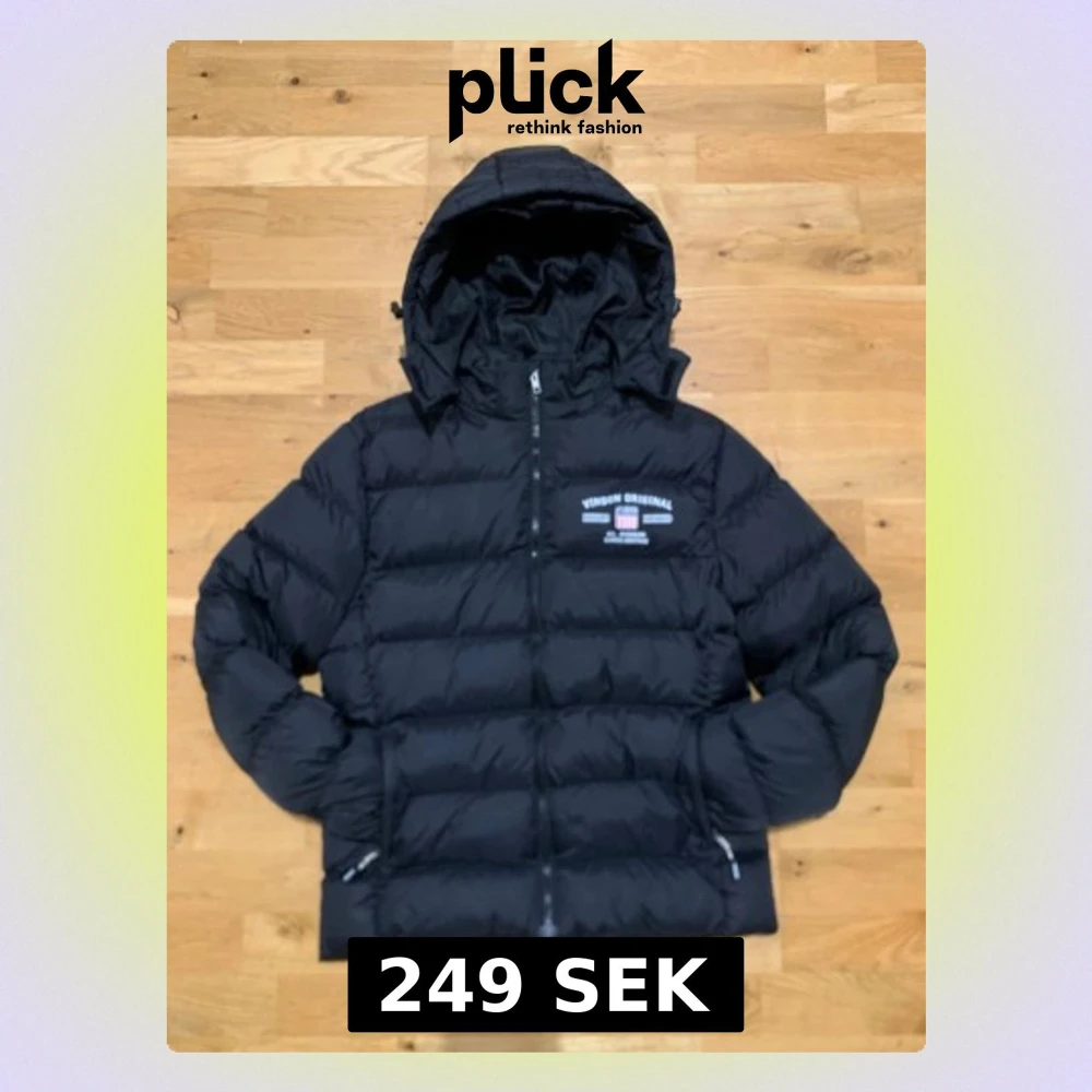 Varm och skön Svart pufferjacka från Vinson Original med avtagbar luva och två sid fickor med dragkedjor, jackan har även en ficka inuti. Den är i väldigt bra skick och är nästan som ny. Storleken är 160