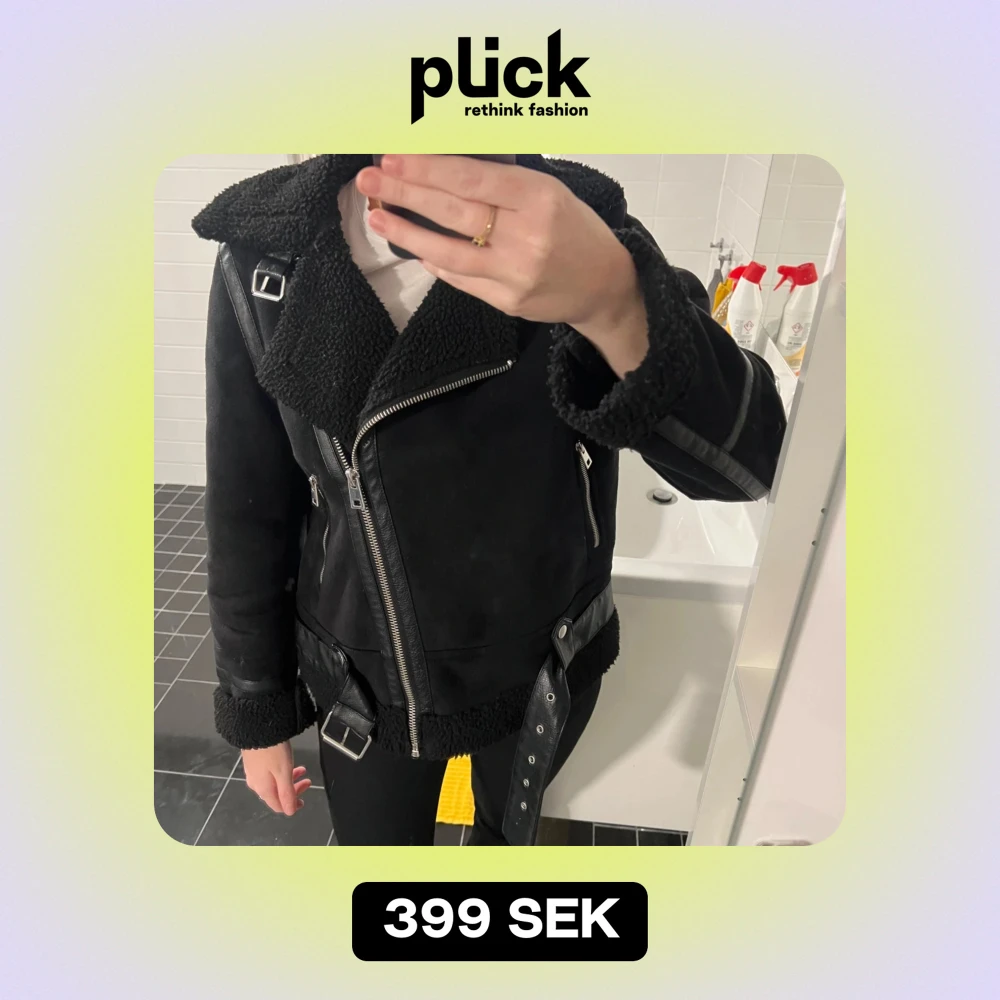 Säljer en snygg svart jacka med teddyfoder och dragkedja. Den har en cool bikerstil med bälte i midjan och spännen vid ärmsluten. Perfekt för höst och vinter när du vill hålla dig varm och stilren. Passar till både vardag och fest!
