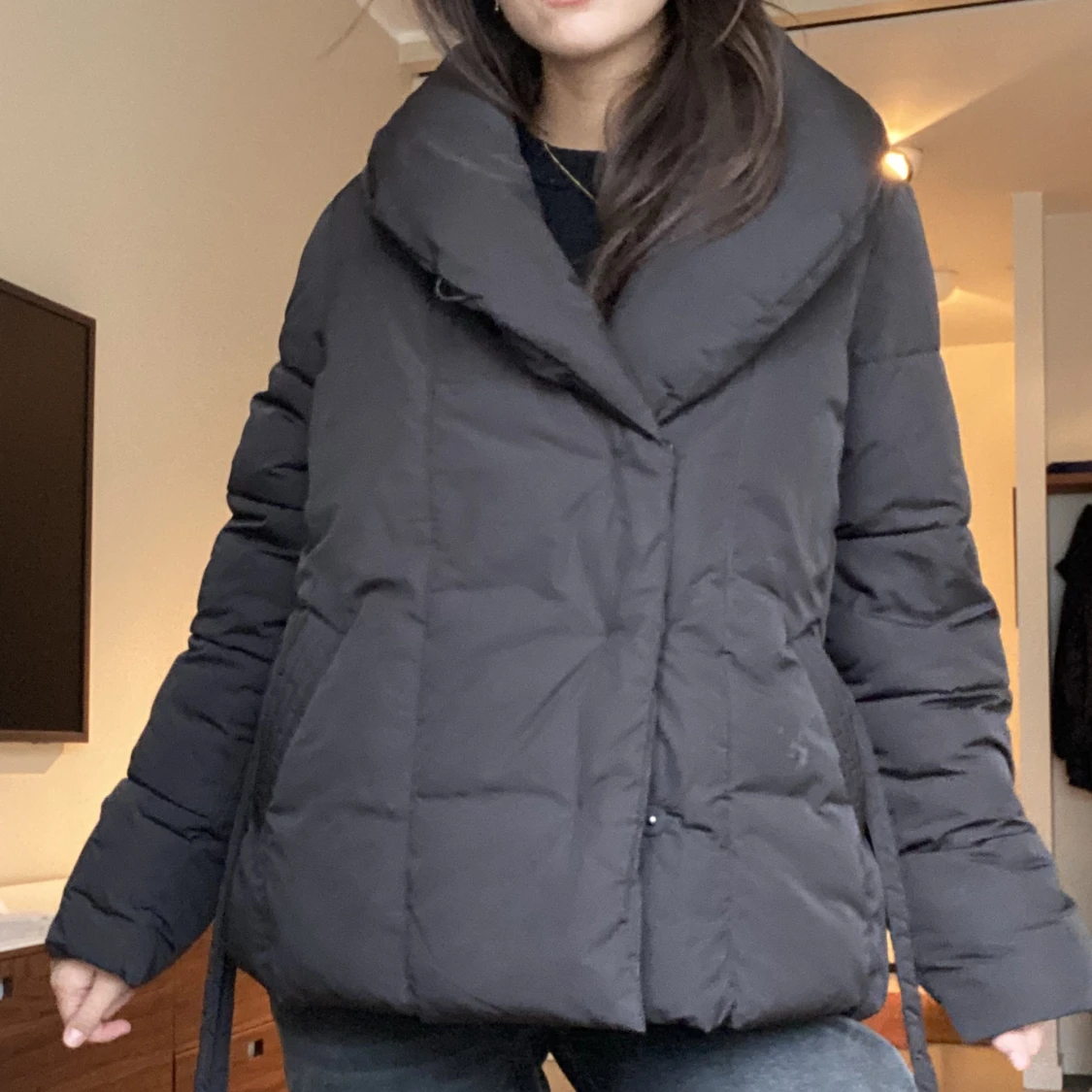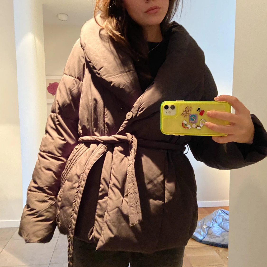 SUPER FIN jacka som jag köpte förra året och som verkligen är så najs! Kragen är ur fin! Går att knyta + ha öppen och man kan även ta bort bandet. Se på sista bilden bättre hur färgen är, alltså hel svart❤️❤️storlek 40 men passar mig som är 170 s/m