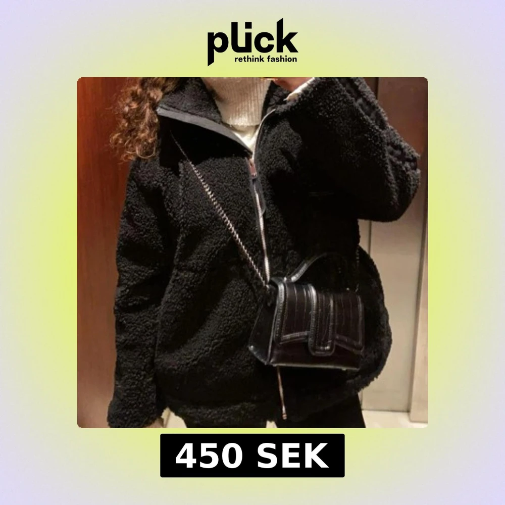 Mysig svart teddyjacka med hög krage, dragkedja och fickor framtill. Jackan har en fluffig struktur och är perfekt för kyliga dagar. Knappt använd & passar XS-M beroende på önskad passform. Perfekt nu till hösten!🍁🍂