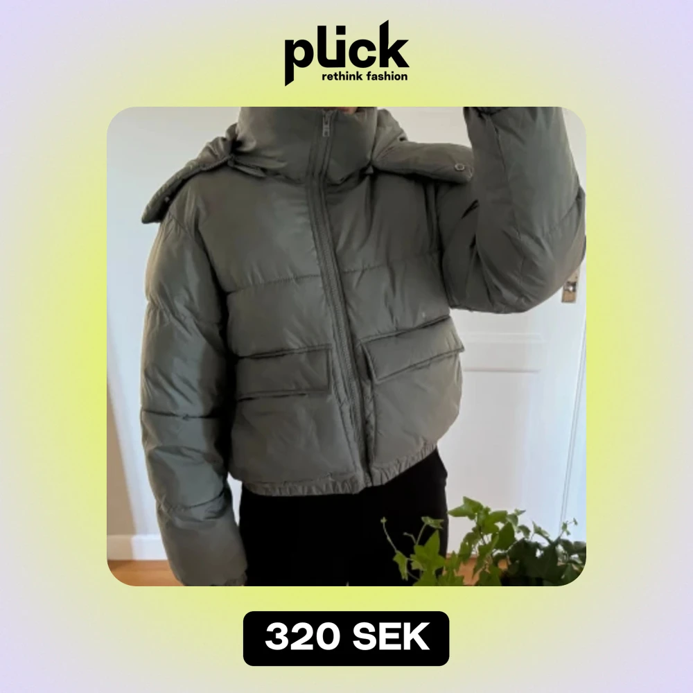 Grön/grå vinterjacka från weekday. Köpt förra året, sparsamt använd, inga slitningar. Supervarm och jätteskön, säljer pga kommer tyvärr inte till användning längre. Jackan har stora fickor fram samt en stor luva som är avtagbar med dragkedja (se bil