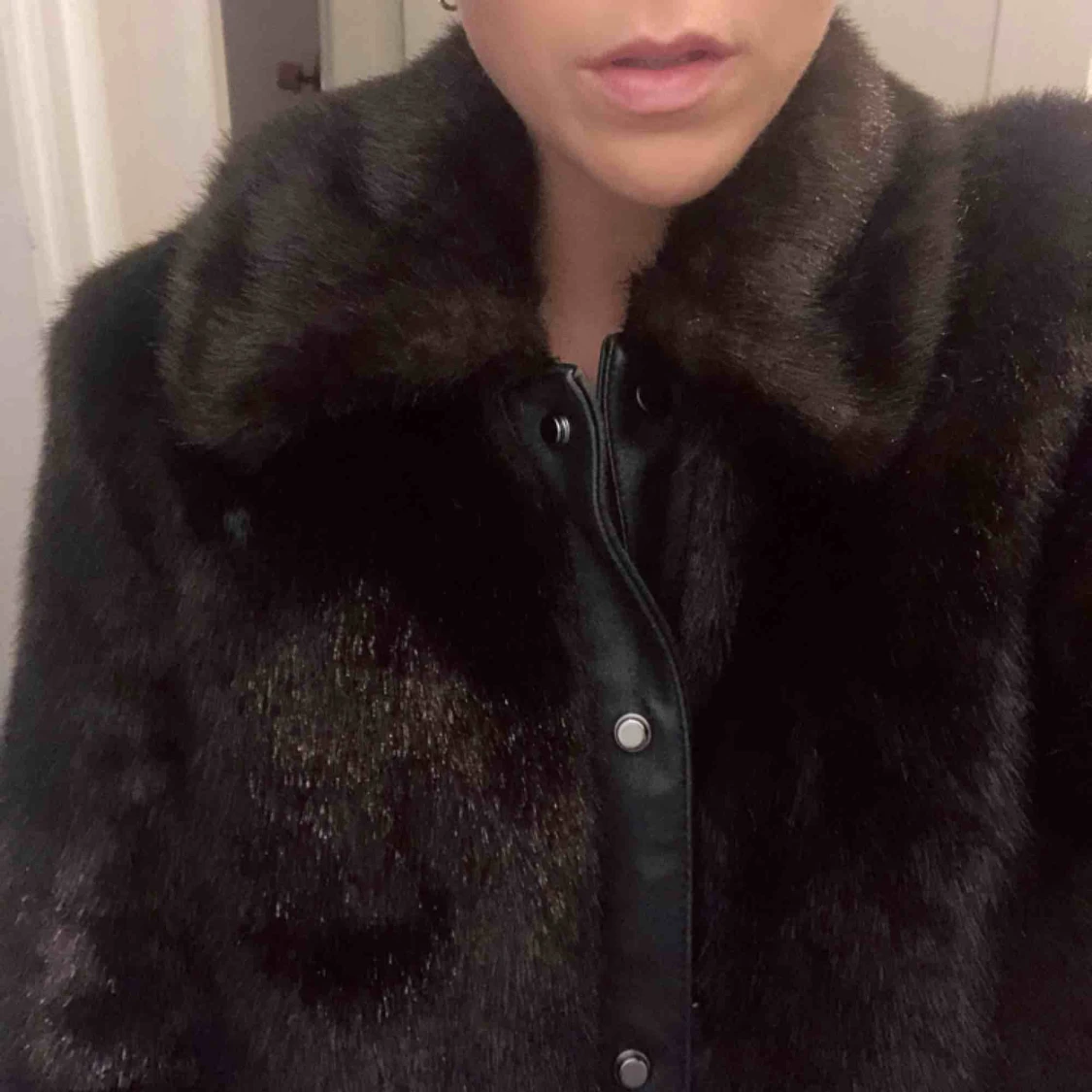Fuskpäls från HM, brun med skinndetaljer. Använd ett fåtal gånger.