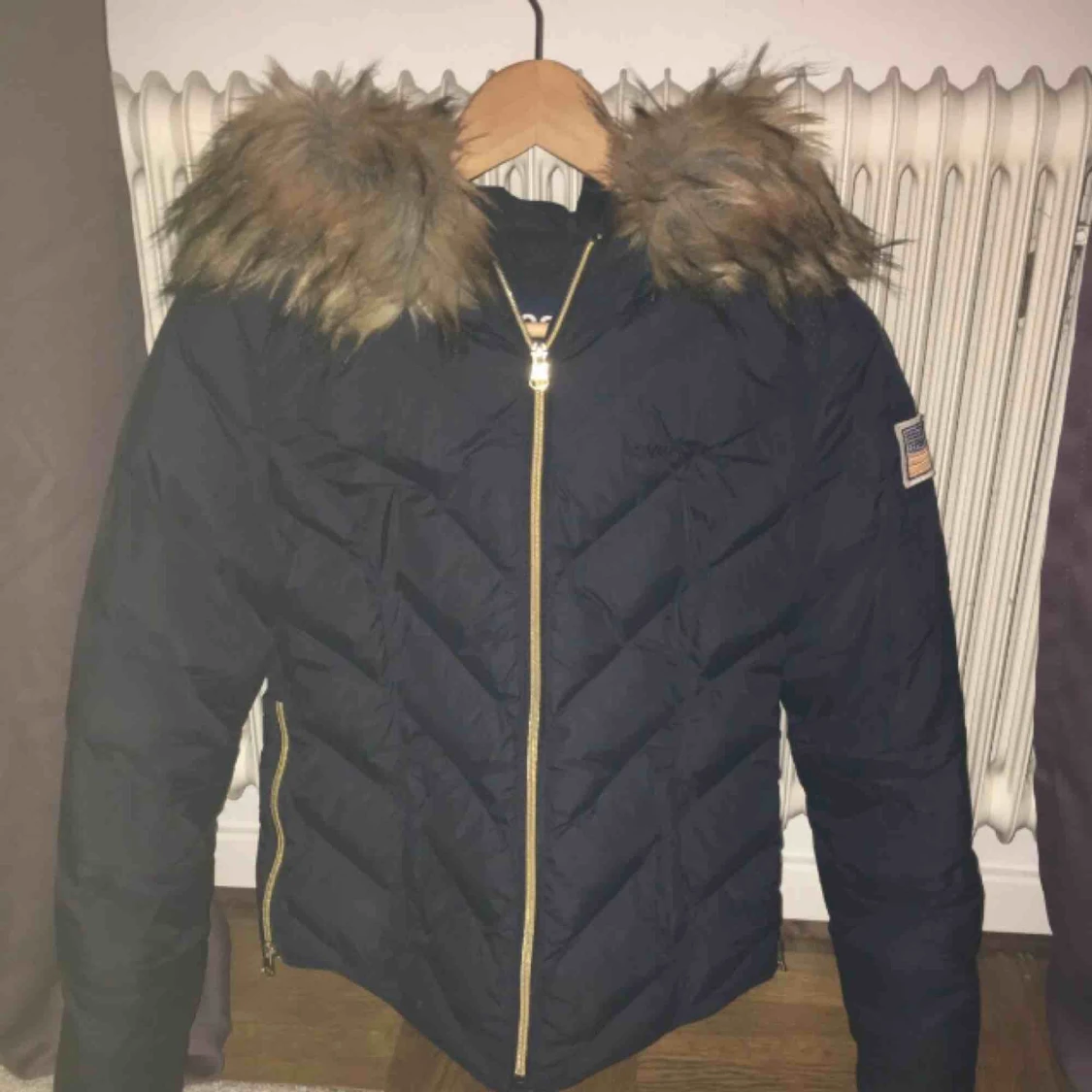 Marinblå sveajacka. XS. Super bra skick. Sparsamt använd från förra vintern då jag hade en annan jacka. Inga hål, fläckar eller slitage! Kan gå ner i pris