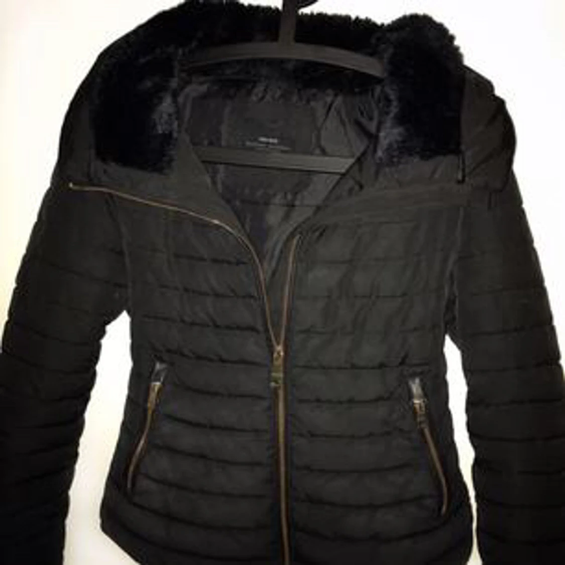 En svart Zara jacka, vinterjacka i storlek S. Nypris 899:- Små defekter/slitningar (bild 2/3) som inte syns mycket. :) (80:- frakt tillkommer)