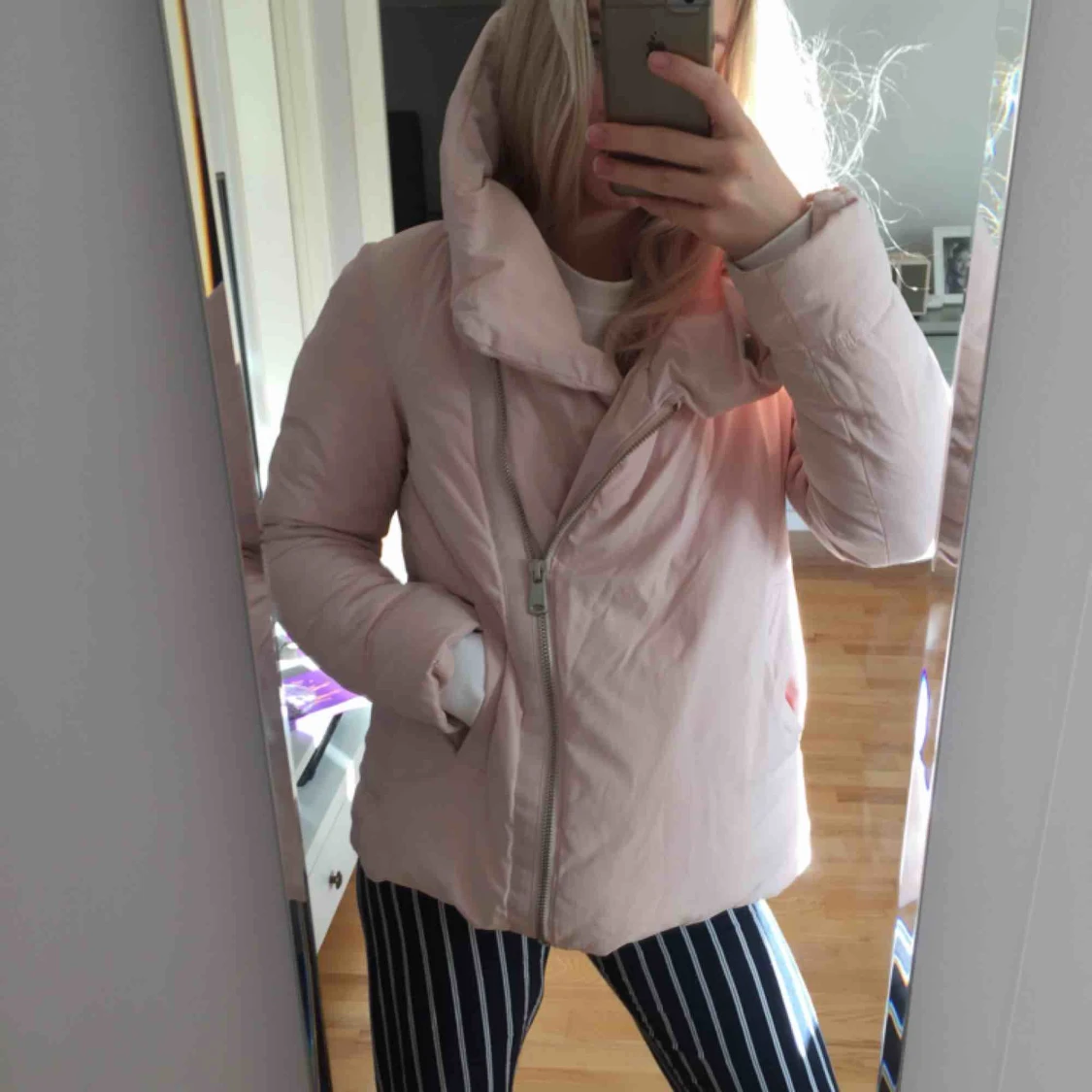 En rosa härlig dunjacka med stor krage/luva. Köparen står för frakten och tar helst swish.