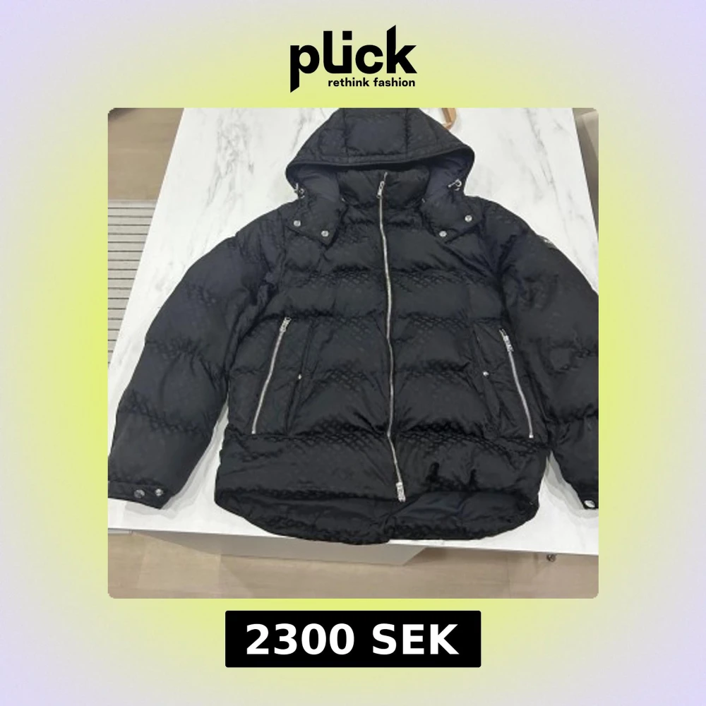 Svart pufferjacka från BOSS med diskret mönster, avtagbar huva och silvriga dragkedjor. Jackan har långa ärmar, två stora fickor med dragkedja och tryckknappar vid ärmsluten. Perfekt för kalla dagar och riktigt snygg streetstil.