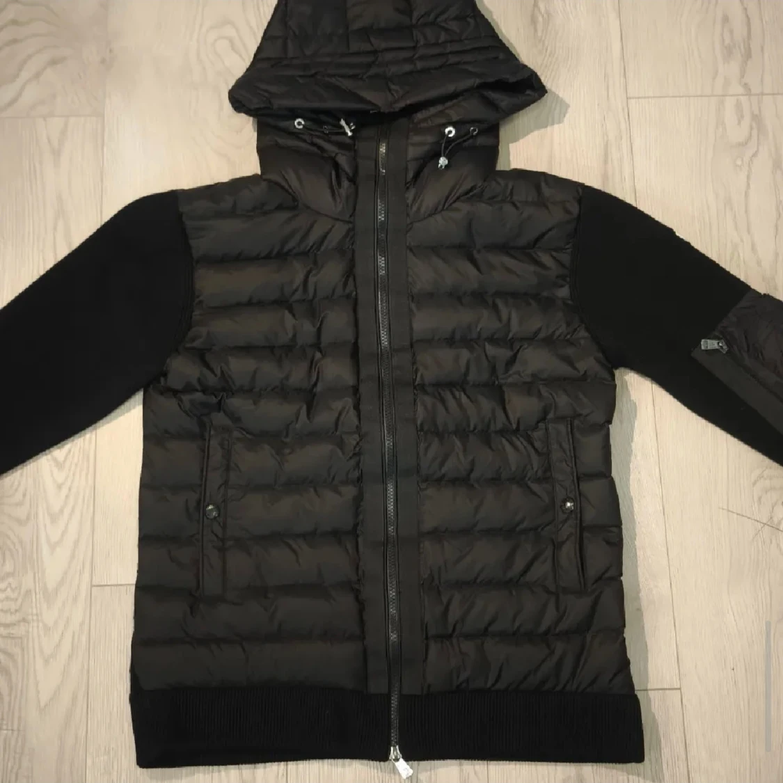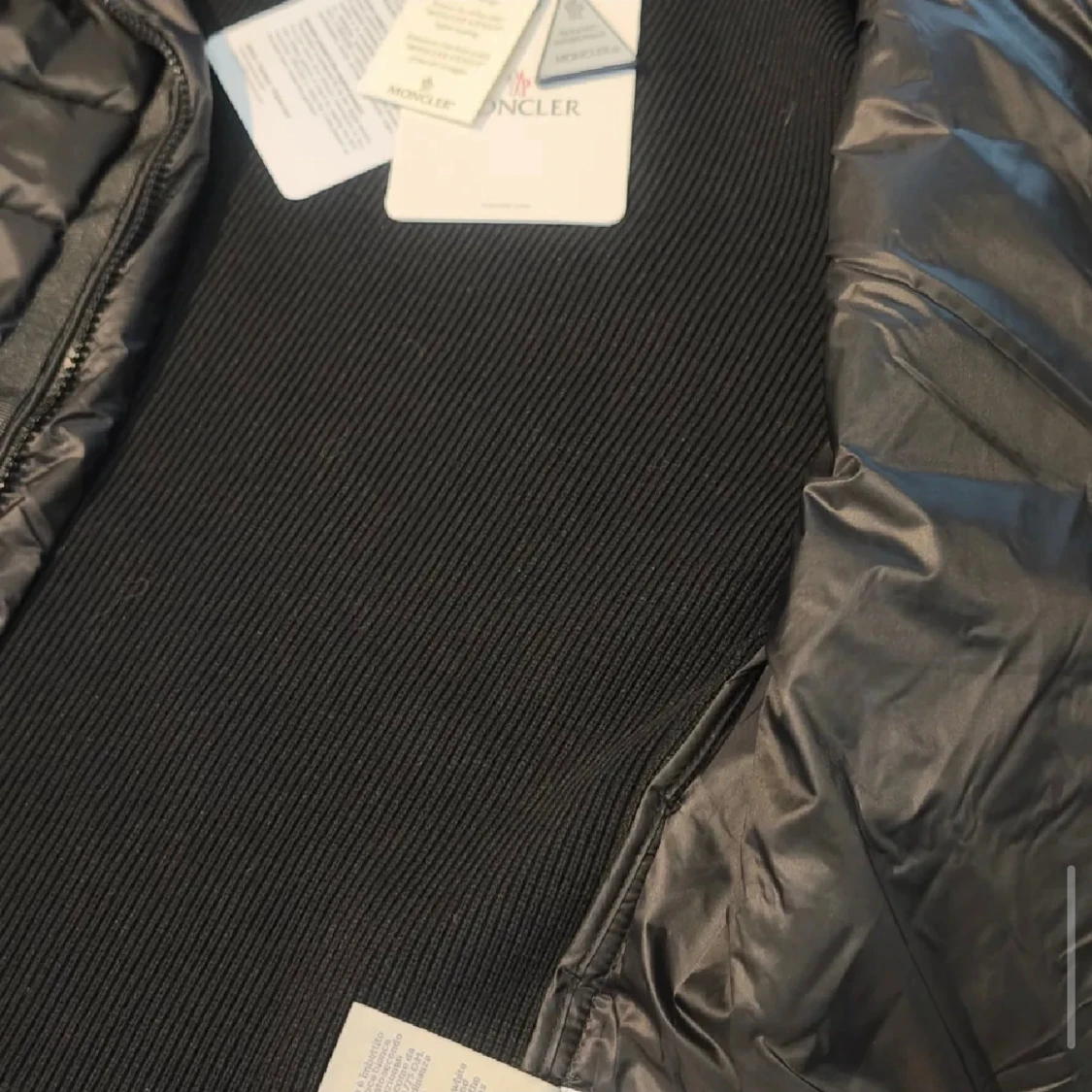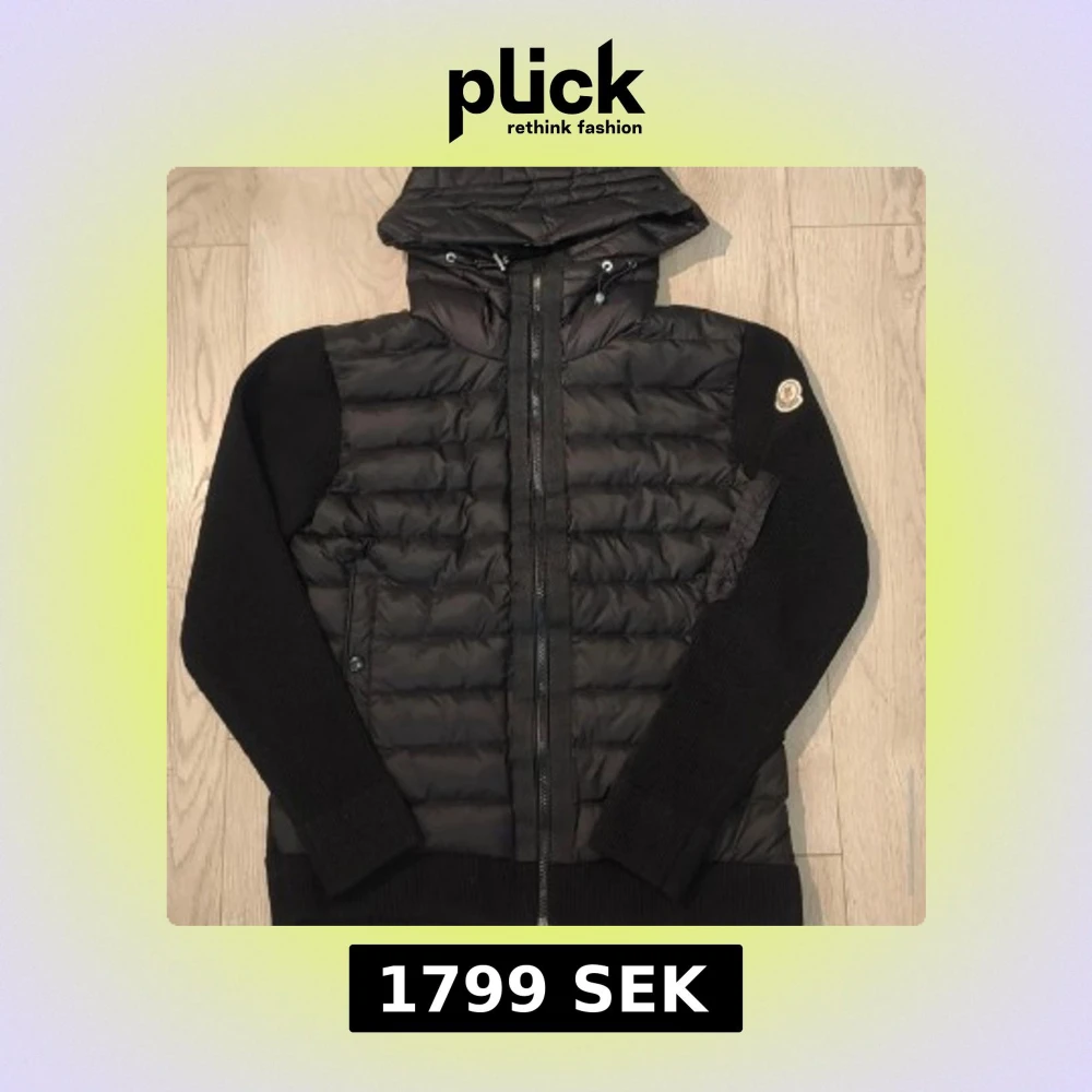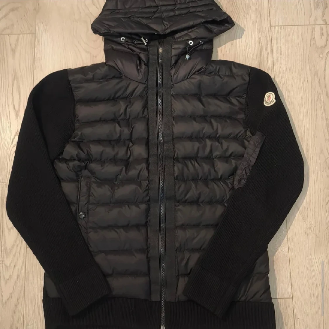 Svart Cardigan från Moncler storlek Mmed stickade ärmar och vadderad kropp. Jackan har luva med dragkedja framtill och fickor med knappstängning. Moncler-logga på vänster ärm och extra dragkedjeficka på ärmen. Nfc tagg, lappar och certifikat. Oanvänd i perfekt skick! Meddela för frågor!