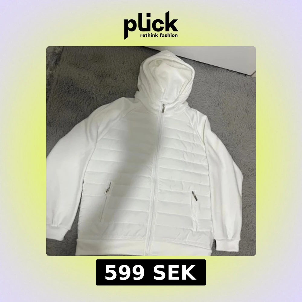 Snygg vit cardigan jacka med hel dragkedja och två fickor med dragkedja. Jackan har luva och långa ärmar med muddar. Perfekt för dig som gillar stilren och enkel design med sportig vibe.