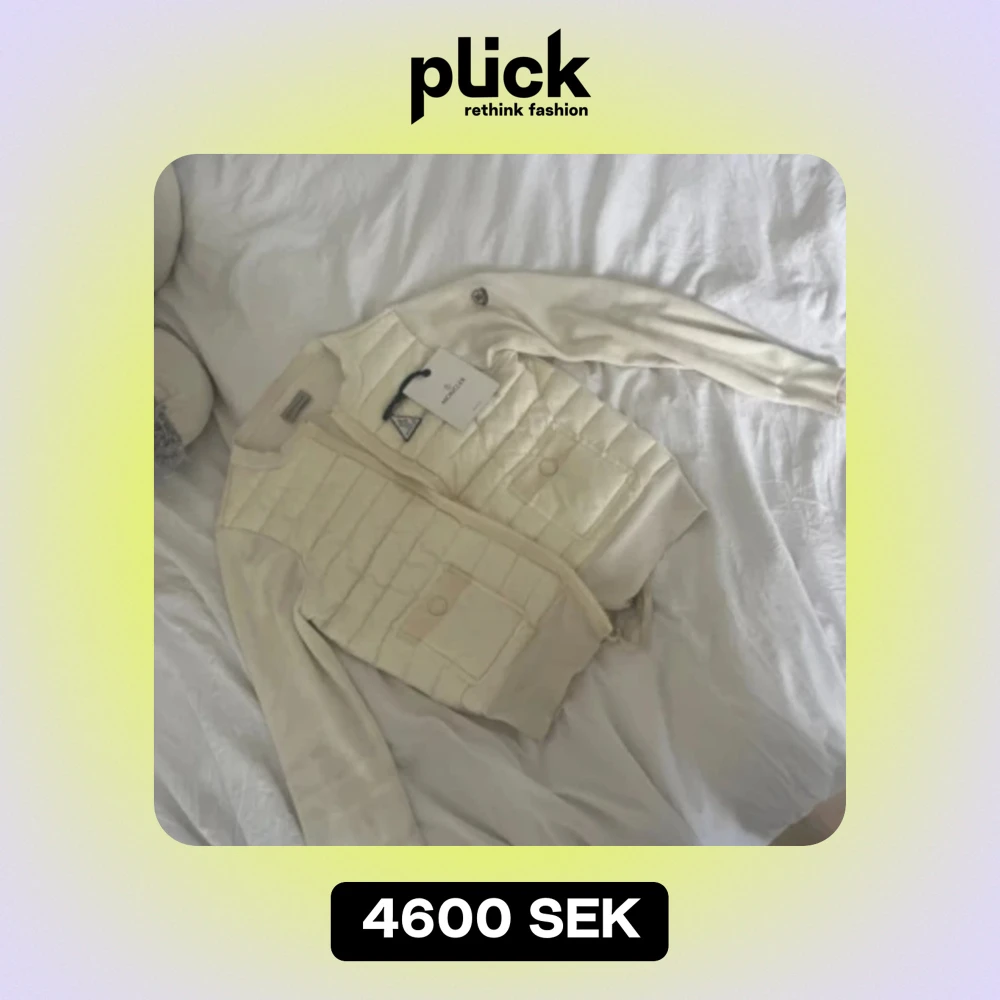 Hej jag säljer min superfina vita cardigan som är aningen förliten den är i storlek M men sitter som S jag är ca 177 och den är tajt på mig och lite kort i armar och längd. Den har en fläck på bak sidan som jag förmodligen går bort i kemtvätt!