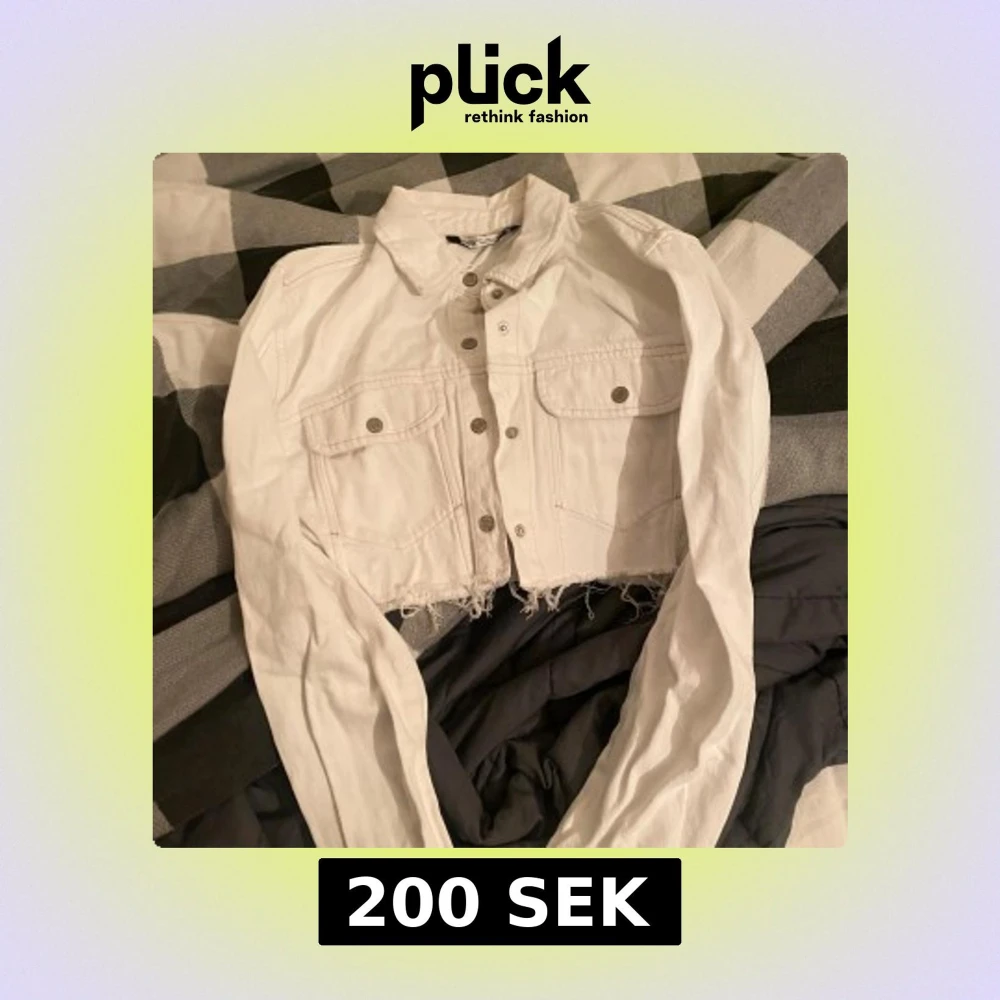 Säljer en snygg vit croppad jacka från Zara med knappar framtill och två bröstfickor. Jackan har långa ärmar och en stilren design som passar perfekt för vår och sommar.