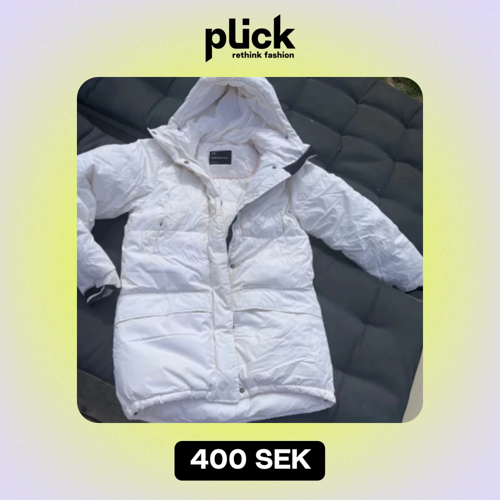 En varm och bekväm vit dunjacka från Peak Performance. Jackan har en huva, långa ärmar och stängs med dragkedja och knappar. Perfekt för kalla vinterdagar.