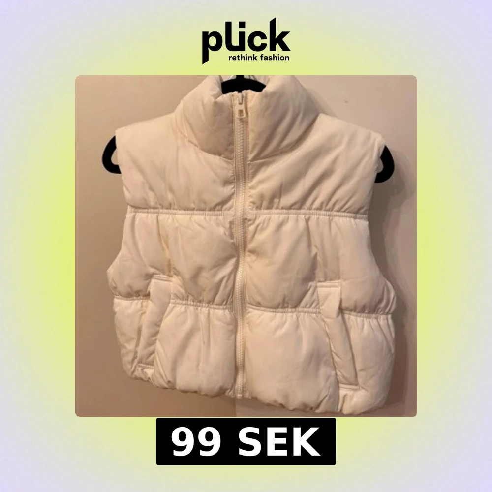 Snygg och mysig vit dunväst med hög krage och dragkedja framtill. Perfekt för kyliga dagar när du vill hålla värmen utan att kompromissa med stilen. Helt oanvänd från H&M.