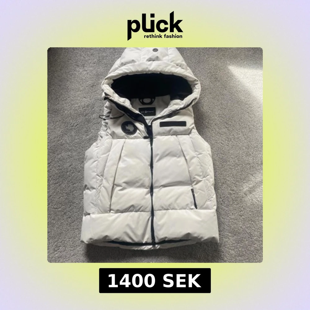 Snygg vit dunväst från sail racing med svart dragkedja och huva. Västen har två fickor framtill och coola logodetaljer på bröstet. Perfekt för lager-på-lager och håller dig varm under kyliga dagar.